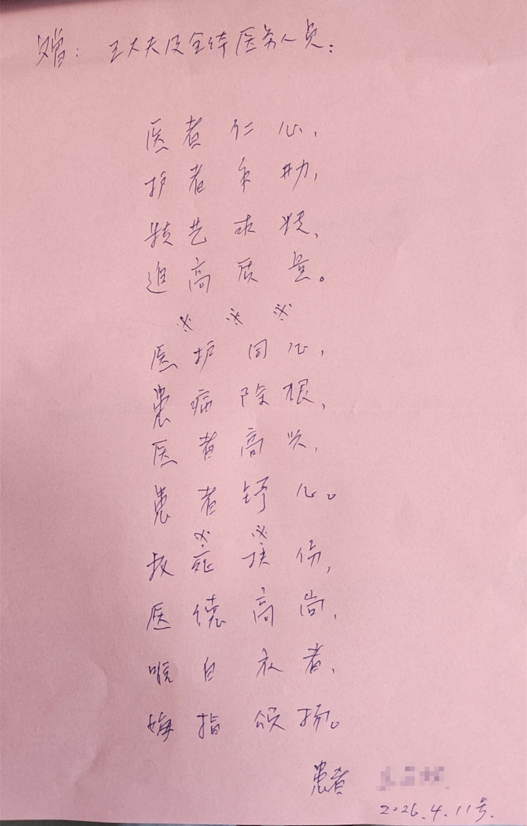 CCU丨一纸感谢信,承载医患情