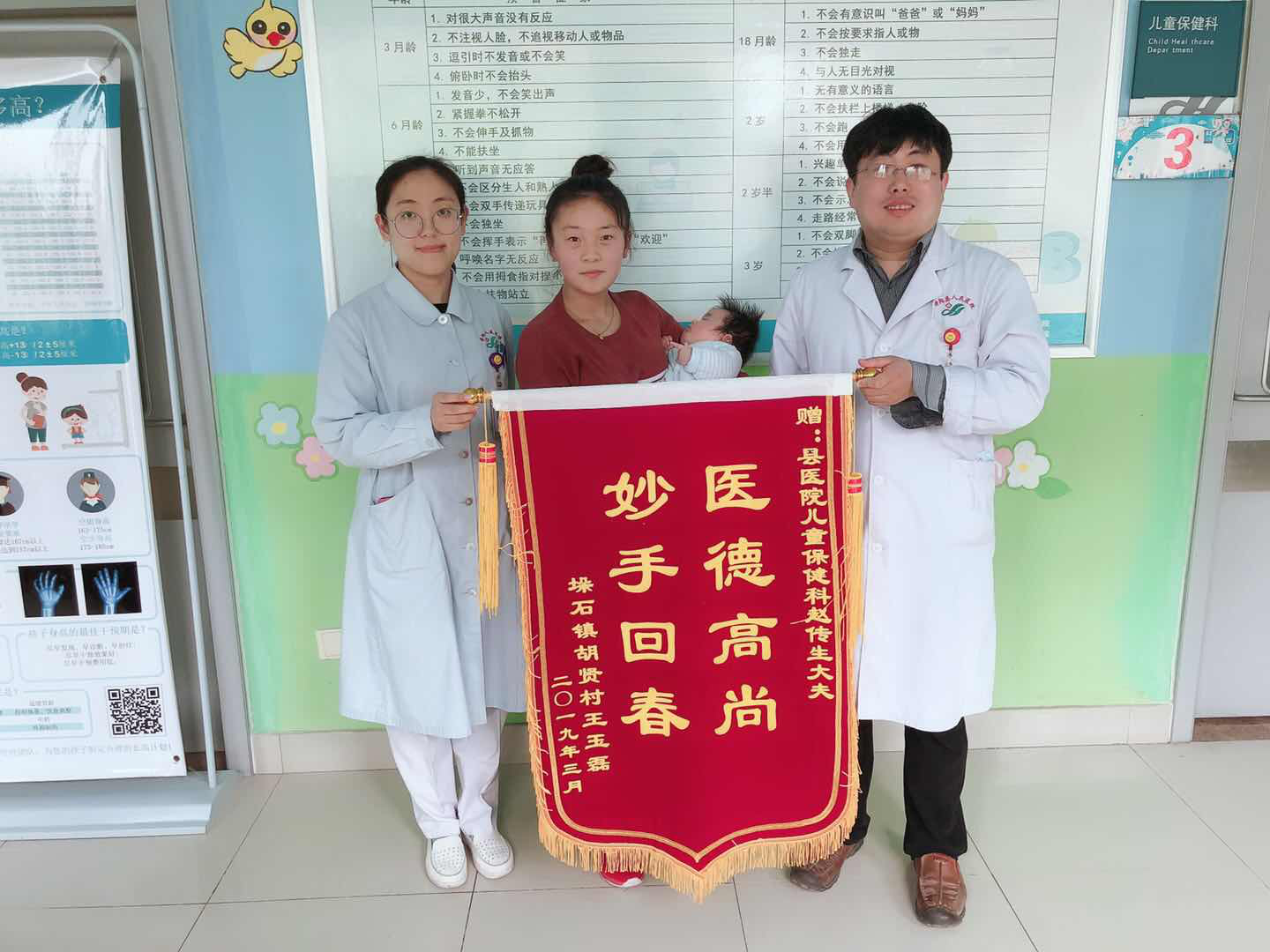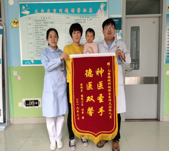 4月2日,患儿母亲将一面带有“神医圣手,德医双馨”的锦旗送到了赵传生大夫手中以示感谢。用宝妈的话讲“我们去了很多地方,最后选择了在这里给孩子治疗,看到医生的认真、负责,我们相信他们的医术水平”。患者及家属的肯定是是对医生最有意义的褒奖。