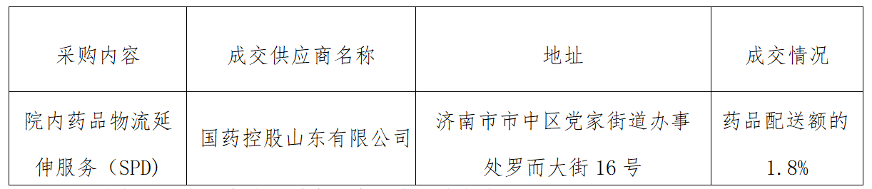 济南市济阳区人民医院院内药品物流延伸服务(SPD)项目成交公告
