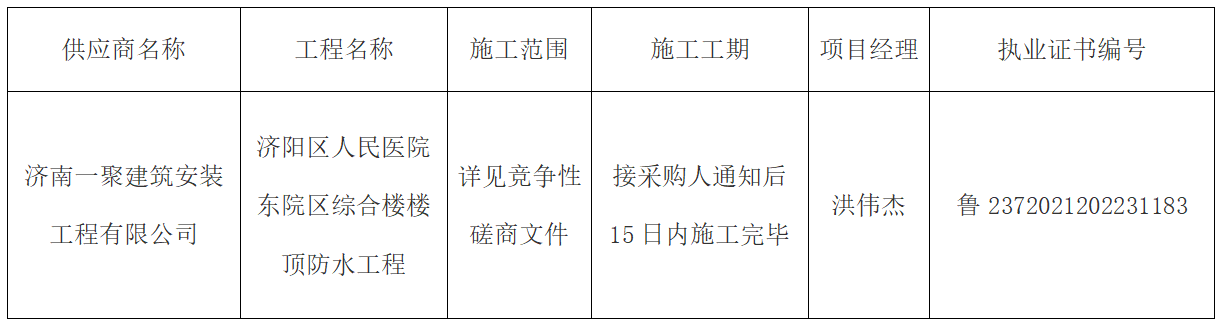 济阳区人民医院东院区综合楼楼顶防水工程(二次) 成交公示