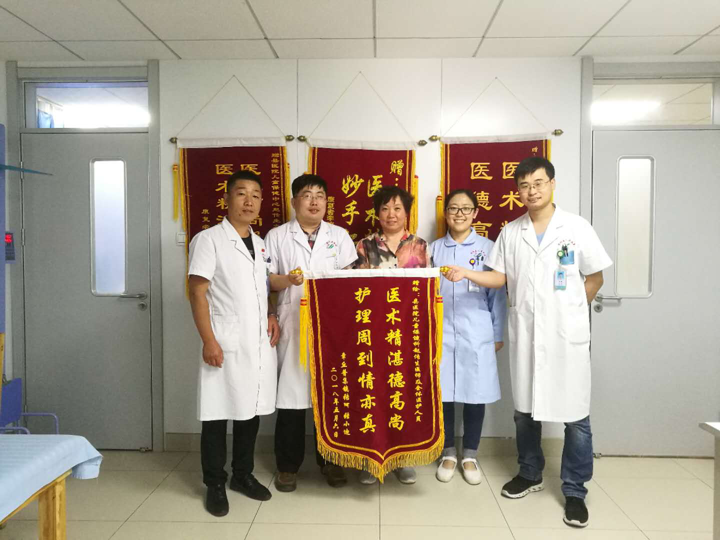 5月8日,来自章丘的张先生的母亲将一面带有“医术精湛德高尚,护理周到情亦真”的锦旗送到了儿童保健科,以表达对赵传生大夫以及儿保科全体医护人员的感谢之情。