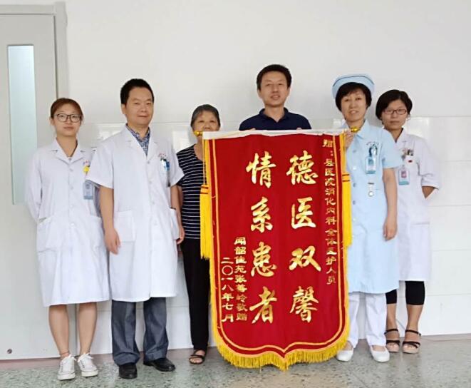 近日,我院消化内科患者张大爷的家人将一面写有“德医双馨,情系患者”的锦旗送到了医生办公室,以表达对消化内科医护人员的感激之情。