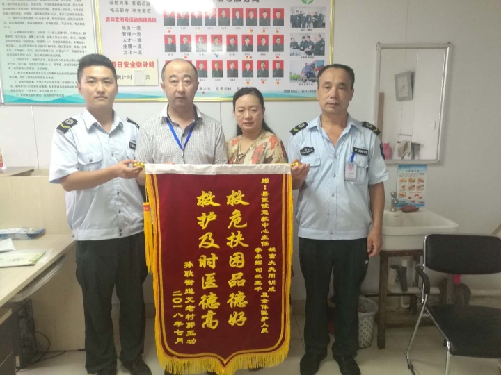 7月17日,患者郭先生将一面写有“救护及时医德高,救危扶困品德好”的锦旗送到了县医院急救中心办公室,并一再表达了感激之情。