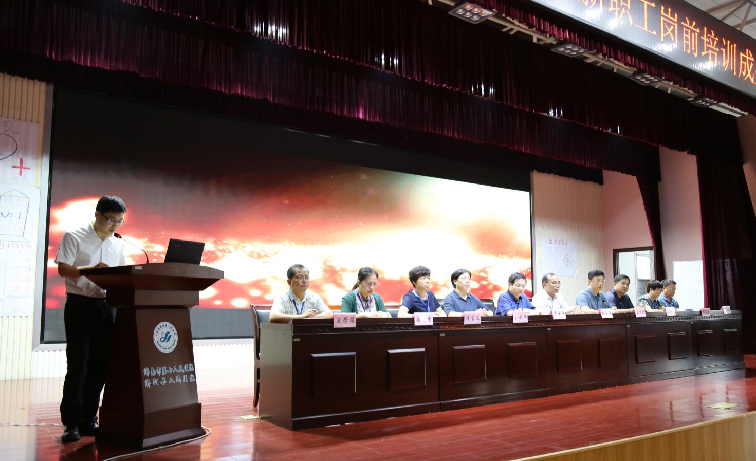 7月16日上午8:00,新职工入职培训迎新会在医院三楼会议室举行,医院党总支副书记张玉海主持,县政协副主席、院长卢士平致欢迎辞。