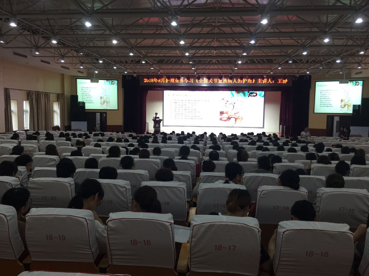 8月23日晚,护理部在办公楼三楼会议室举行了《髋关节置换病人护理》和《重点环节的应急管理制度》业务讲座,共有340余名护理人员参加。