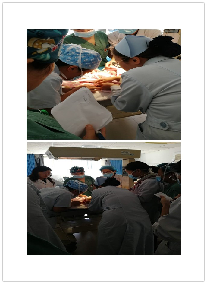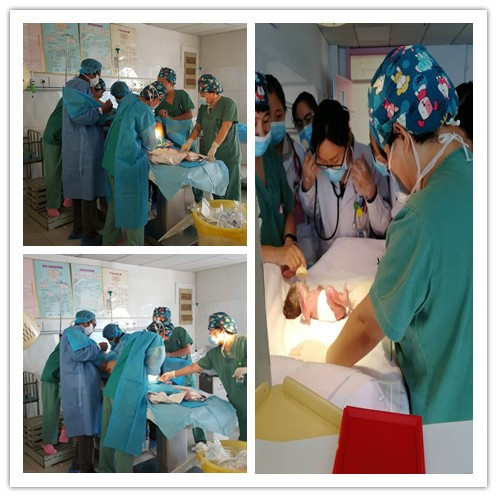 9月29日上午9点左右,由120急救中心转入产房一名年龄42岁,孕周不详,并且第一胎为剖宫产的二胎产妇 ,经由产科医生查体后,推算孕周为29周,但此时产妇宫口已开全,胎头已拨露,经产科李艳副主任医师评估后,决定经阴分娩,并通知儿科医师,迅速成立新生儿抢救小组。