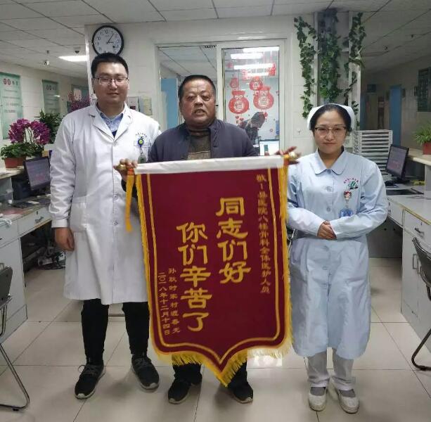 12月6日,杜大爷治愈出院,激动的说:“你们对我的好,我都记在心里,谢谢大家!”半月后,杜大爷专程来到骨一科病房送上感激的锦旗。