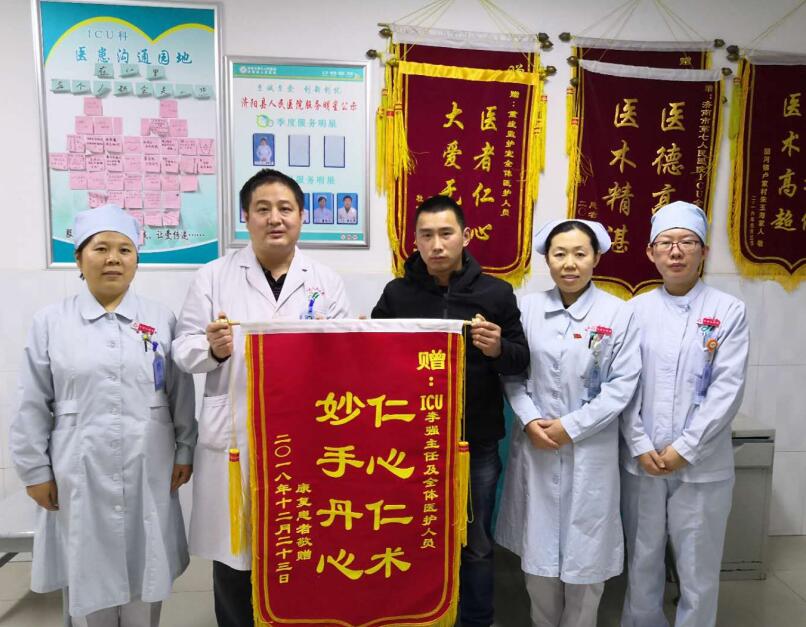近日,ICU2床患者家属将一面绣有“仁心仁术,妙手丹心”的锦旗送到了护士站,特意感谢ICU李强主任及全体医护人员对其家属及时有效的治疗及近半个月的精心护理。
