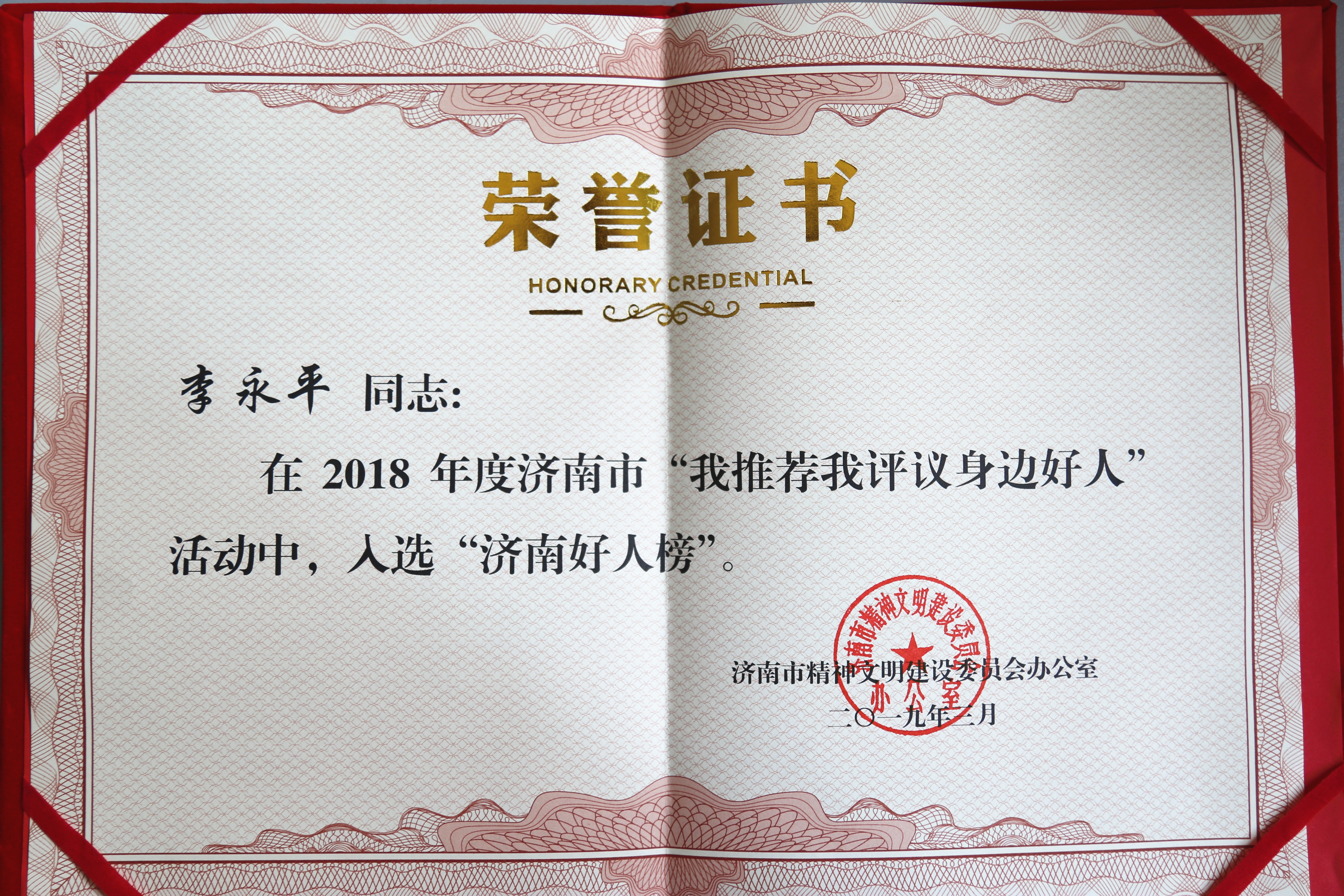 近日,我院心内科主任李永平、手术室护士高健在2018年度济南市“我推荐我评议身边好人”活动中分别入选“敬业奉献好人”和“见义勇为好人”。