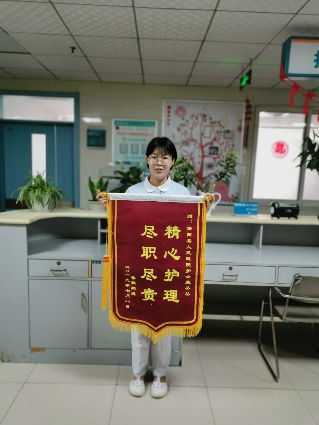 7月8日,患者鲁先生将一面写有“精心护理,尽职尽责”的锦旗送到了普外一科护士盖丛丛的手里,以表达他对盖丛丛护士及普外一科全体医护人员的感激之情。