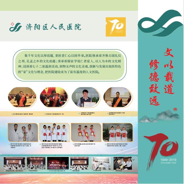 济阳区人民医院自1949年创建以来,已经走过了整整七十年,历经七十年的波澜壮阔,几代人砥砺前行、和衷共济、并肩携手、薪火相传,将医院发展至今天这般壮大。她的历程值得沉思,她的瞬间值得回忆,她的精神值得传承,她的历史值得铭记。为此,在医院七十年华诞之际,因地制宜在门诊楼医疗街建设成了院史长廊。百余张照片记录着医院走过的历程,16张展板也将成为医院文化建设的标志之一。徜徉其中感受历史的同时,继续传承医院精神,更好地为人民群众的健康保驾护航。