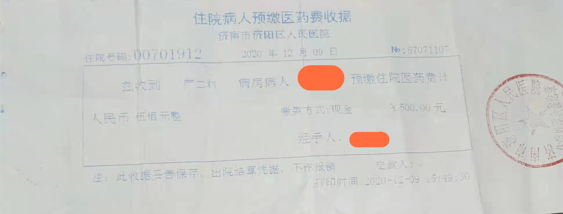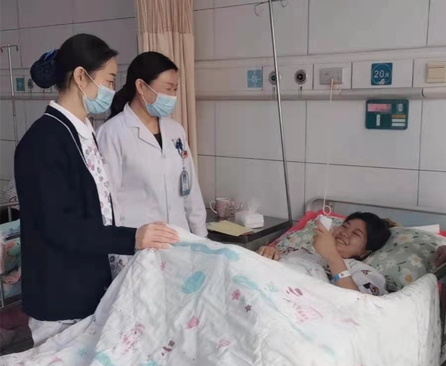 次日,待王女士情况稳定,李艳主任和左传敏护士长将住院缴费单据交到其手中,王女士眼含泪花,激动地连声道谢。
