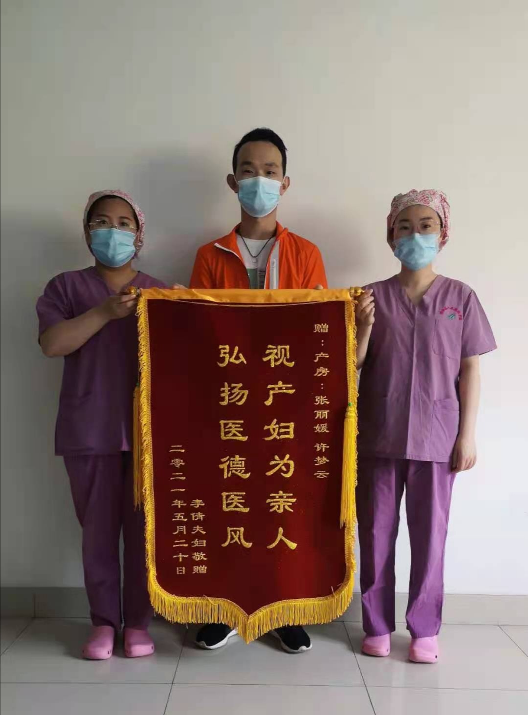 5月22日上午,张女士委托其家属将一面写有“医德高尚暖人心 医术精湛传四方”的锦旗送入产房,感激产房人员的暖心服务及专业救护。