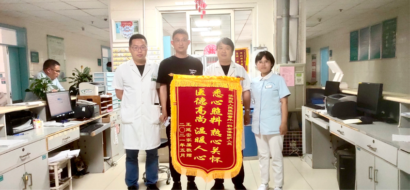 5月27日,两位即将出院患者委托家属将两面锦旗送到普外一科,以表对全体医护人员的感激之情。