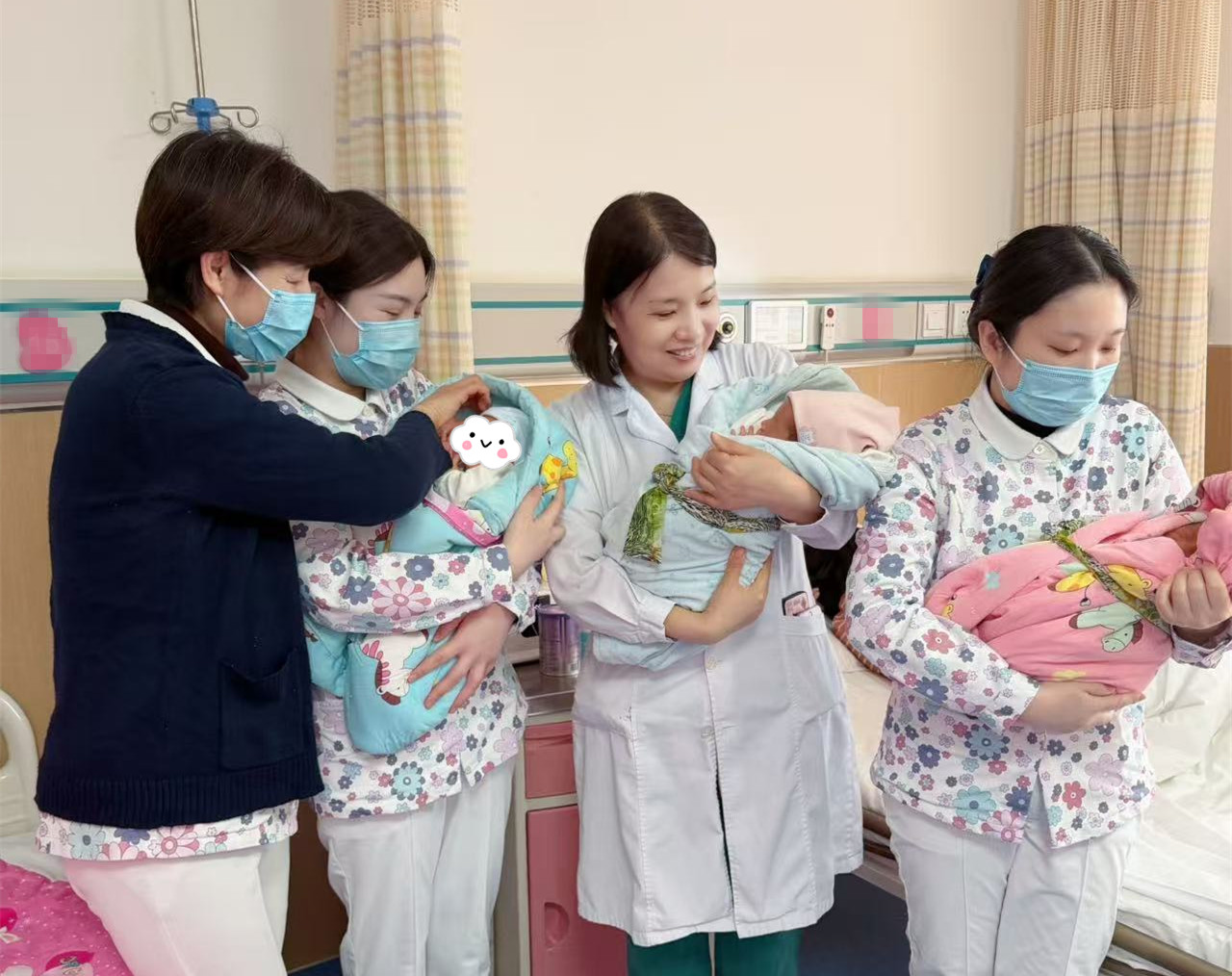 一名孕36周的三胞胎孕妇突发胎膜早破合并胎盘早剥,标准产科医护团队迅速反应,即刻启动孕产妇急救绿色通道。产科、手麻科、产房、新生儿科等团队火速集结,启动紧急剖宫产预案,在多学科紧密配合下,顺利接生三位早产宝宝,并于1月13日康复出院。