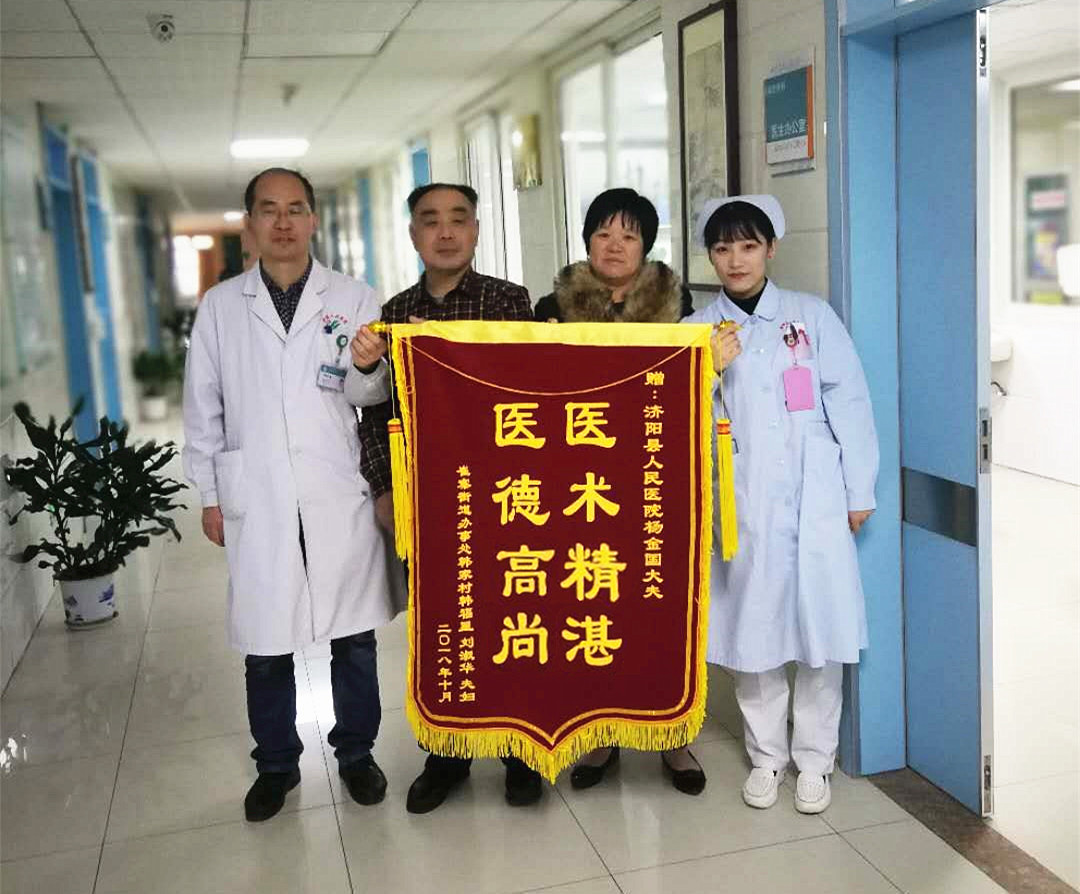近日,我院综合外科患者刘先生的家属将一面写有“医德高尚 医术精湛”的锦旗送到护士站,以表达对科室全体医护人员的感激之情。