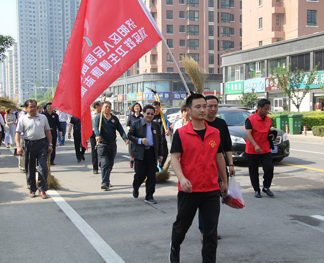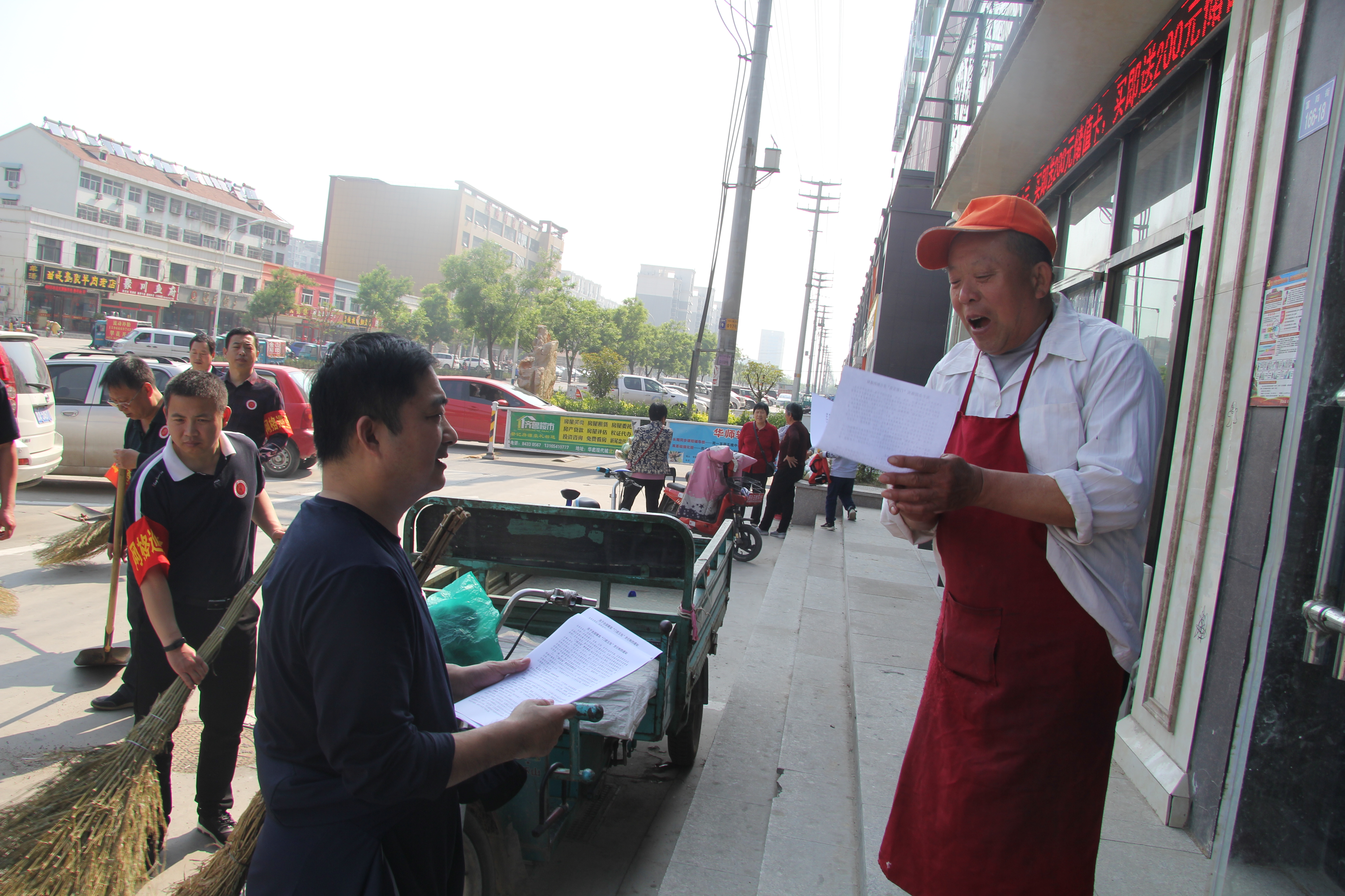 两支队伍,分工明确,责任到人,10人一组,兵分四路,针对社区沿街商铺、小区院内环境、楼道的垃圾进行收集、清运、处置;对电瓶车辆的乱停乱放及电线的不安全放置进行了整顿调整;对楼道内随意张贴的小广告进行清除,并向商铺发放“关于全面落实‘门前五包’责任制的通知”明白纸,向过往的居民群众宣传创国卫复审工作的意义,希望大家自觉维护社区卫生,共建美好家园。大家忙得不亦乐乎,用辛勤的汗水倾诉着对社区对济阳的热爱。经过一上午的努力,社区、街道环境焕然一新。