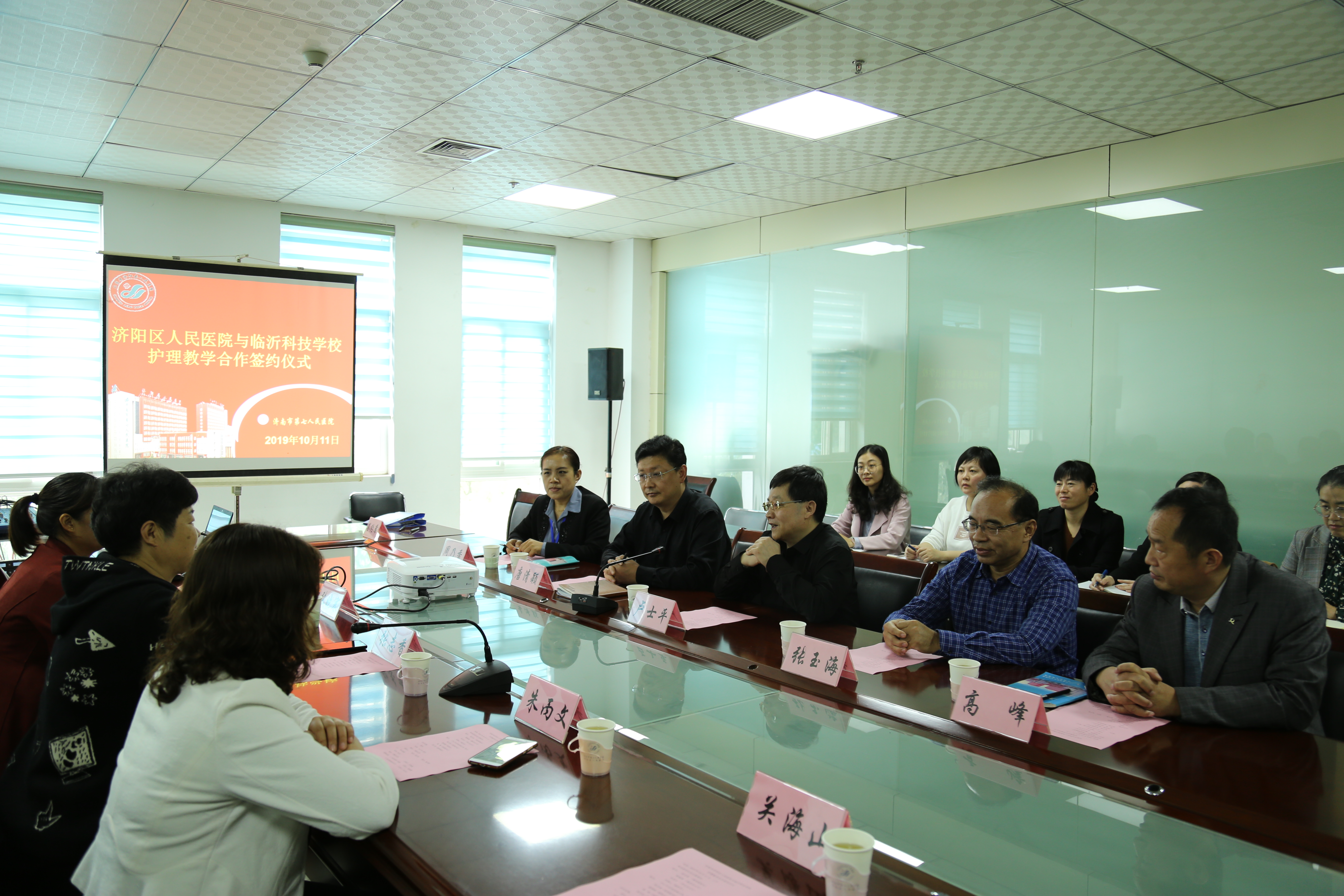 10月11日上午,临沂科技普通中等专业学校常务副校长张志香一行三人,来到我院进行临床教学基地考察并与我院签订临床理论见习教学协议,区政协副主席、院长卢士平及相关人员参加了活动。
