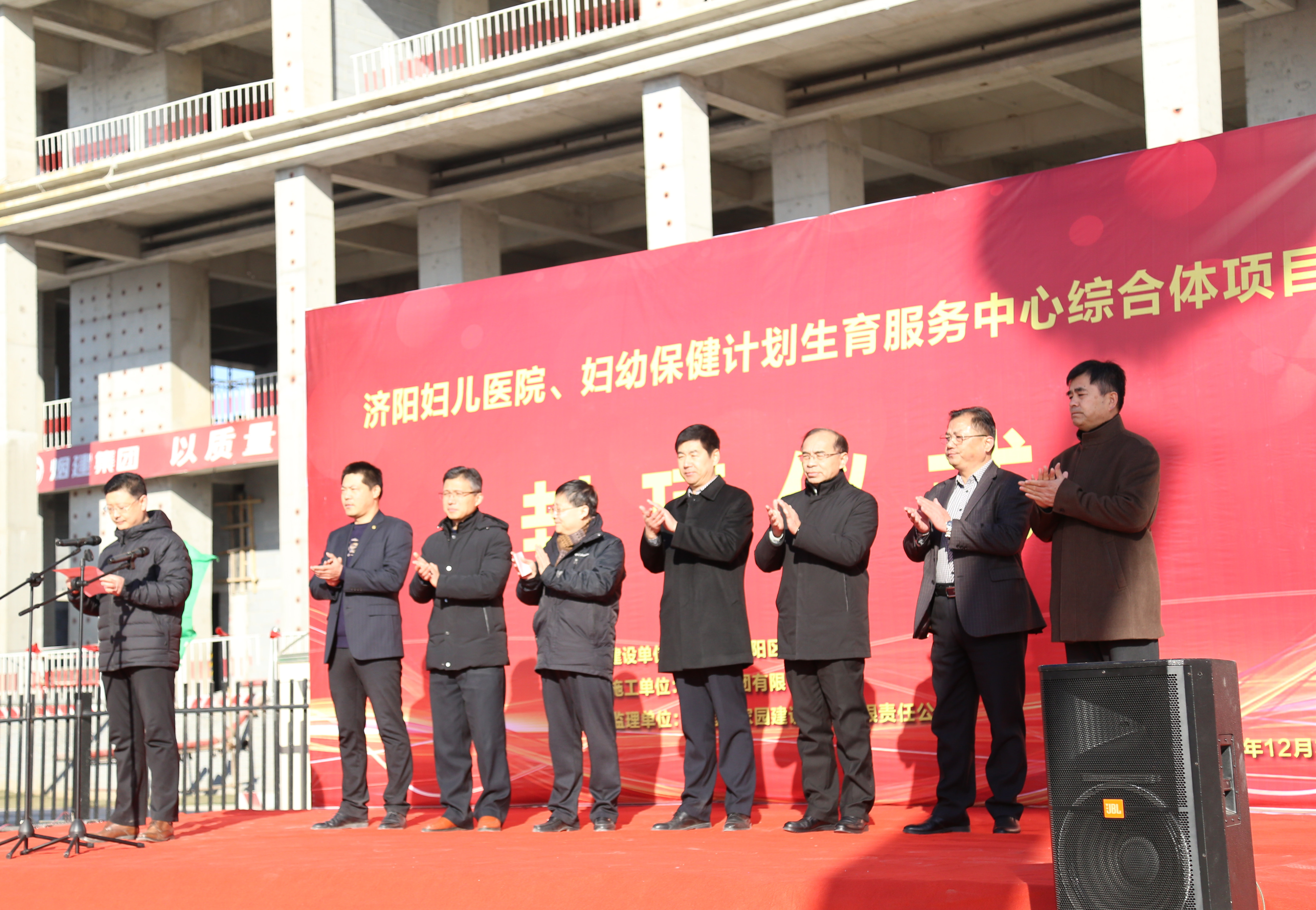 封顶仪式由医院副院长唐清颖主持。杨德超局长、卢士平院长、烟建集团有限公司济南分公司总经理助理、济阳妇儿医院项目部项目经理刘吉翔分别致辞。刘经理作表态性发言。
