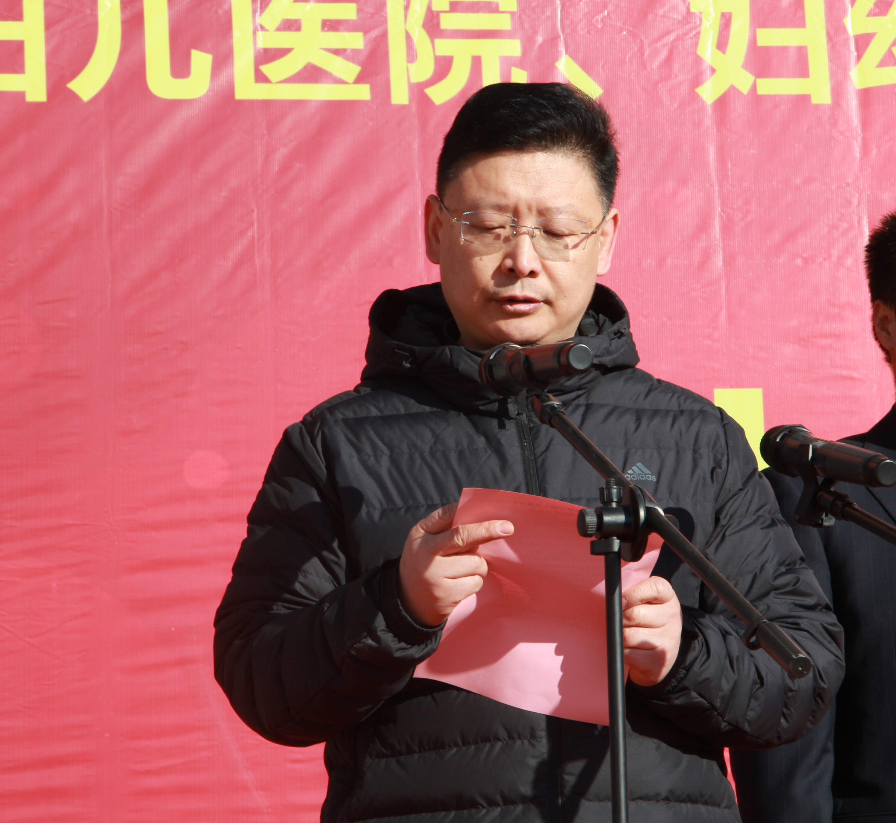 杨局长代表卫健局党委首先向济阳区人民医院表示了祝贺,向施工单位和医院职工的辛勤劳动表示感谢。他指出,妇儿医院项目工程是市级重点工程,也是医院发展史上的一件盛事,更是一项关乎全区妇女、儿童健康的民生大事,工程建设相关各方以高度的责任感和使命感,认真筹划、精心施工,顺利完成了妇儿医院楼的封顶。他希望济阳区人民医院以此为平台,加大医共体建设的力度,为全区人民提供更优质更高效的医疗服务,助力全区的经济发展!