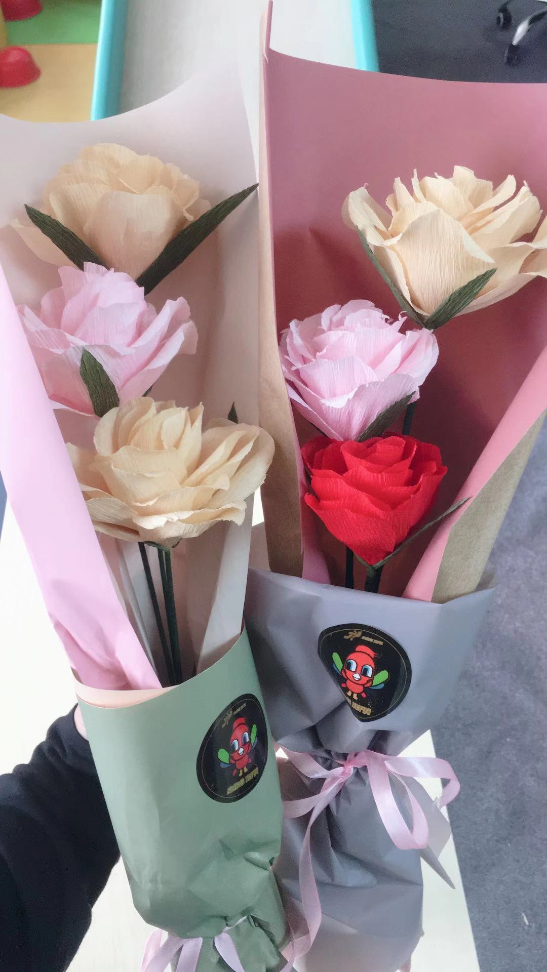 授课老师耐心细致地讲解如何剪出丰富多彩的花样,制作出生动美丽的花儿;孕妈妈们用心倾听,在轻松愉悦的氛围中,发挥想象力,积极动手实践,小心翼翼地剪裁、黏贴、包扎,呵护手中的花儿。在孕妈妈们的巧手搭配下,一朵朵纸花渐渐演绎成一束美丽的鲜花。看着亲手创造的精美作品,孕妈妈们感受到了艺术创作带来的成就感。
