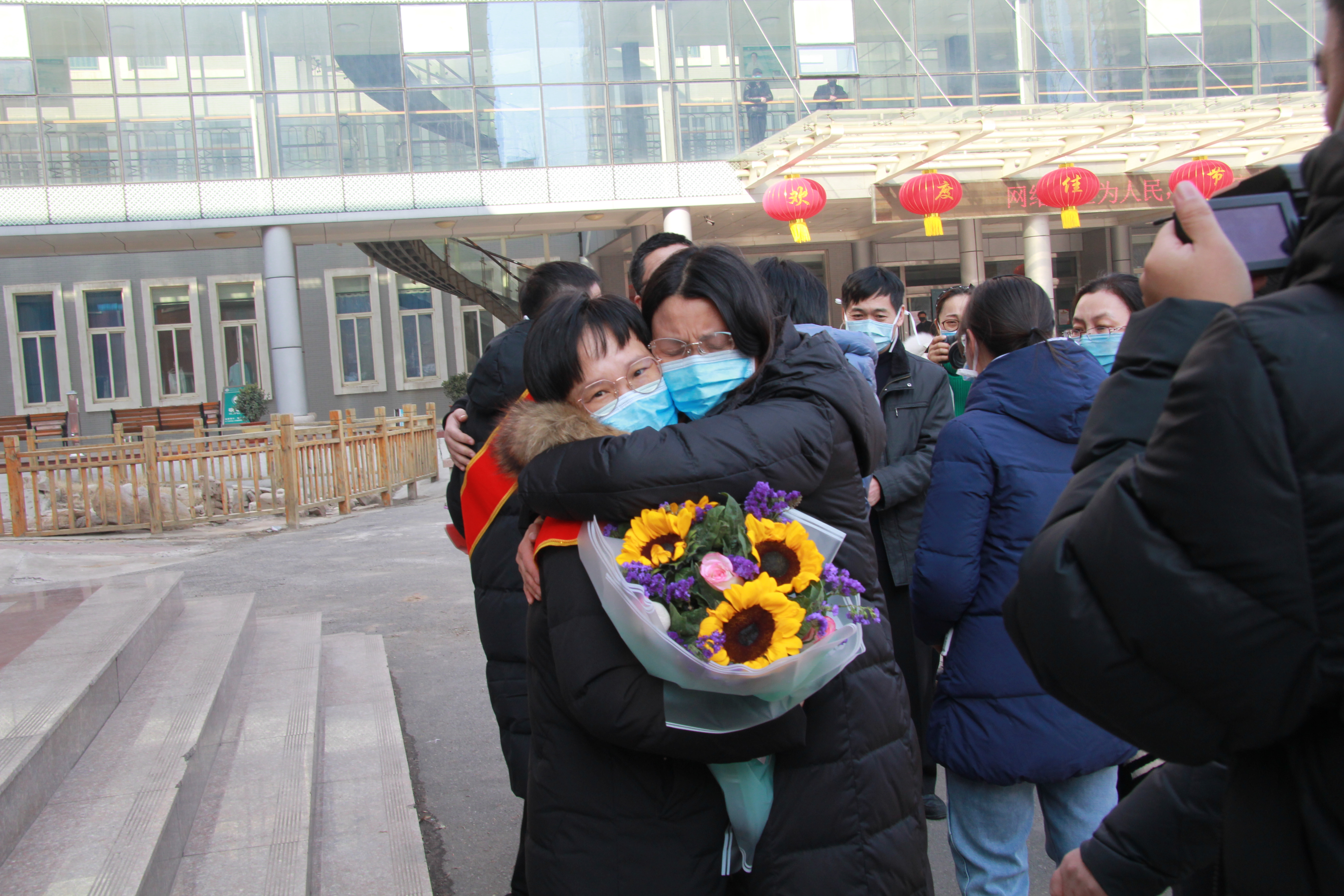 科室同事依依不舍,抱在一起,洒泪而别,
