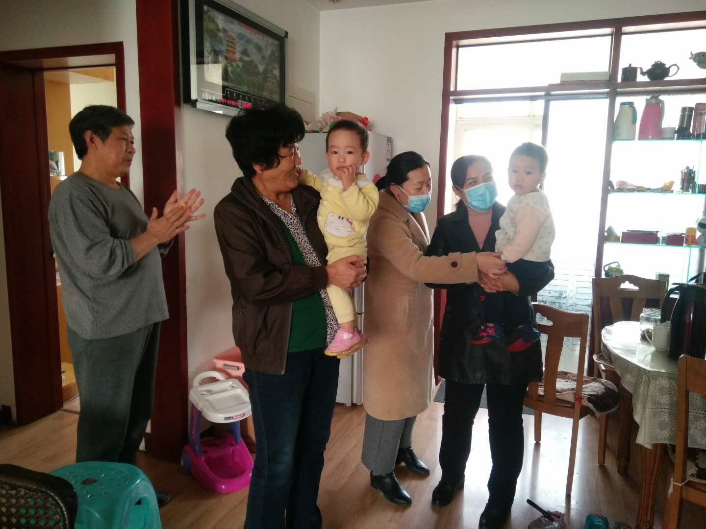 三名一线队员所在科室为一线人员制作视频、每周一次去家中探望老人和孩子,带去水果、儿童玩具、孩子零食、老人牛奶等,与老人谈心、陪孩子玩耍,体现了医院大家庭的温暖。