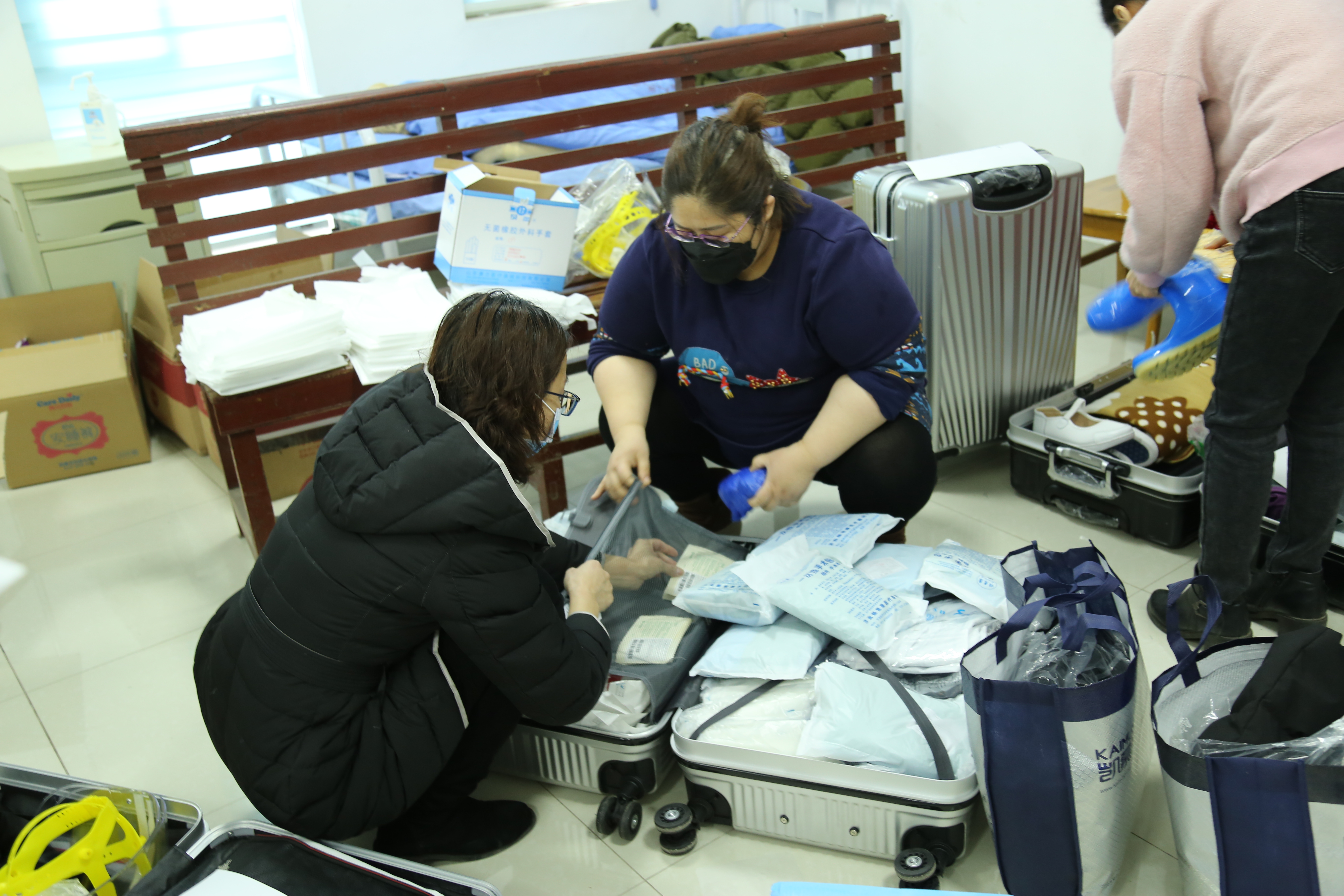根据赴武汉文件要求,及时为一线人员调配各类物资,配备了常用药品、防护用品、生活用品和食物共计70余个品种、近300件物品,包括防疫口罩、各种防护服、鞋套、药品、消杀物品及日用品。在得知武汉队员住宿条件差后,及时给3位援鄂一线人员购置羽绒服、保暖衣、电热毯等。考虑队员赴武汉后对南方饮食习惯不适应,又及时准备了方便面、饼干、巧克力、火腿肠、水果。3位队员赴武汉后,医院及时为他们购买了电话卡,费用由医院负担,切实保证通讯畅通。