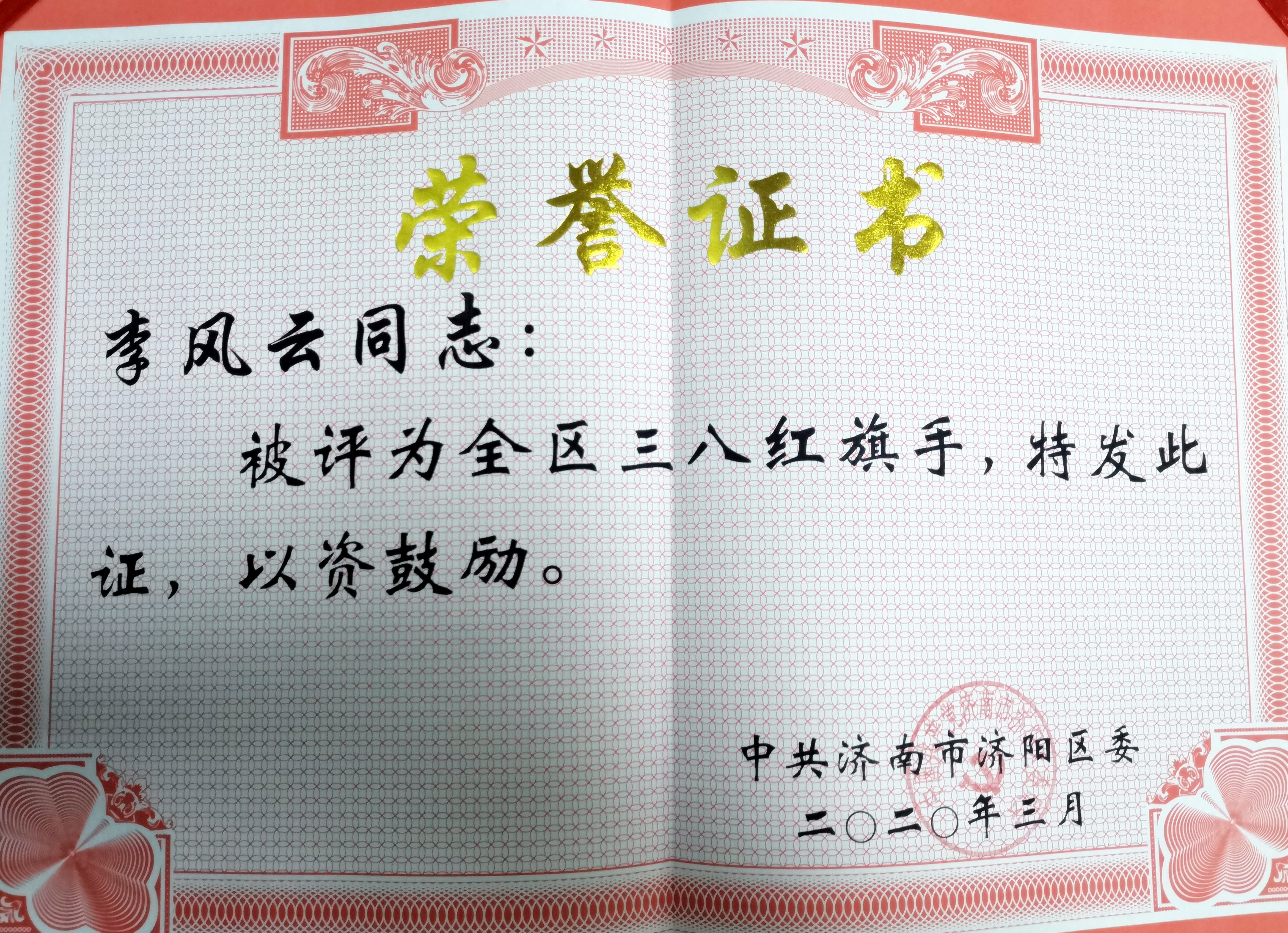 将全区“三八红旗手”荣誉证书转交给李风云、孙立群家人,共同分享喜悦的同时对援鄂家属的支持与理解表示真挚感谢。