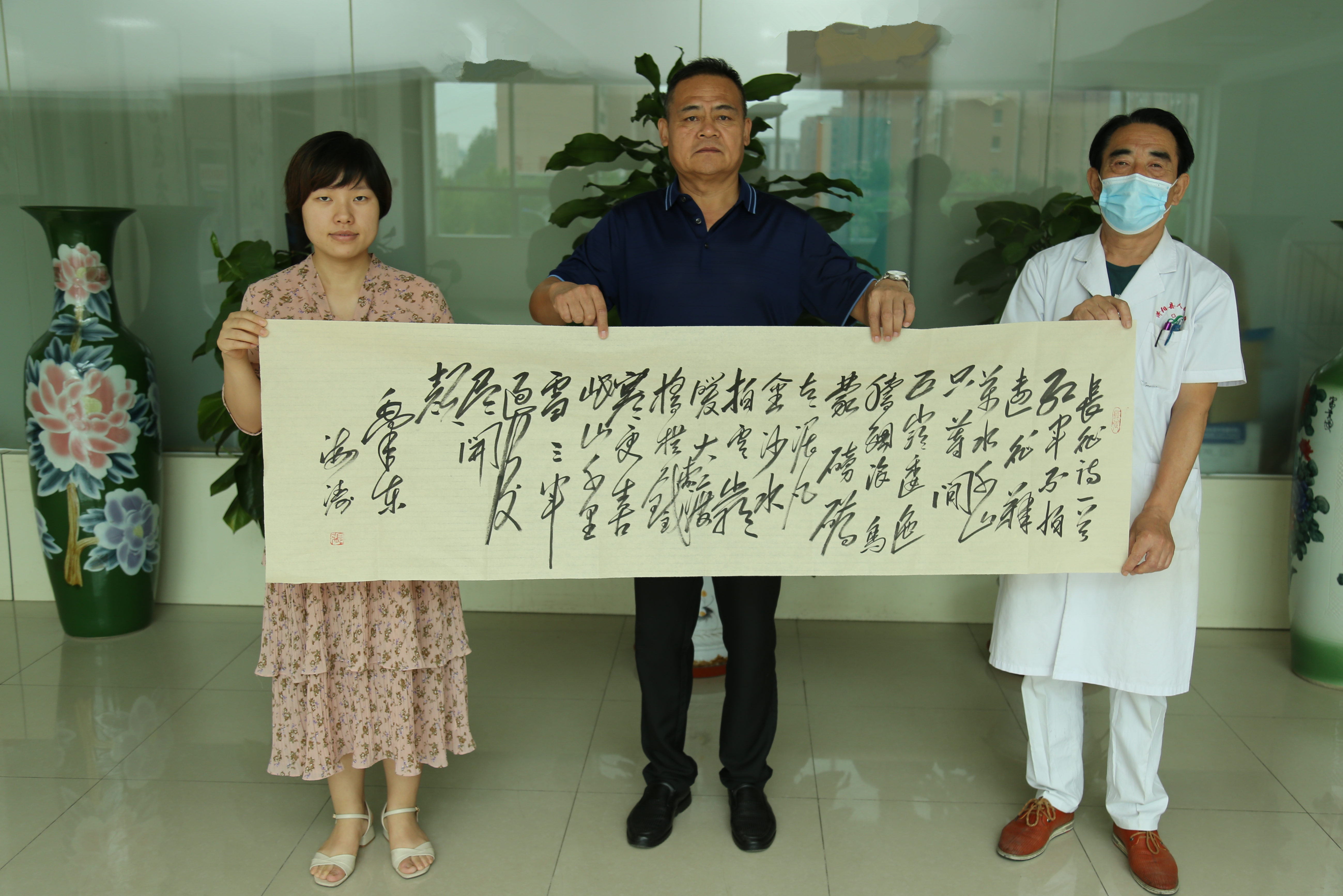 6月18日一早,区人民医院办公室迎来一位带着墨宝而来的客人,原来他是城乡交通运输局的张海涛先生,特来表达对医院援鄂人员和全院医护人员的深切敬意。