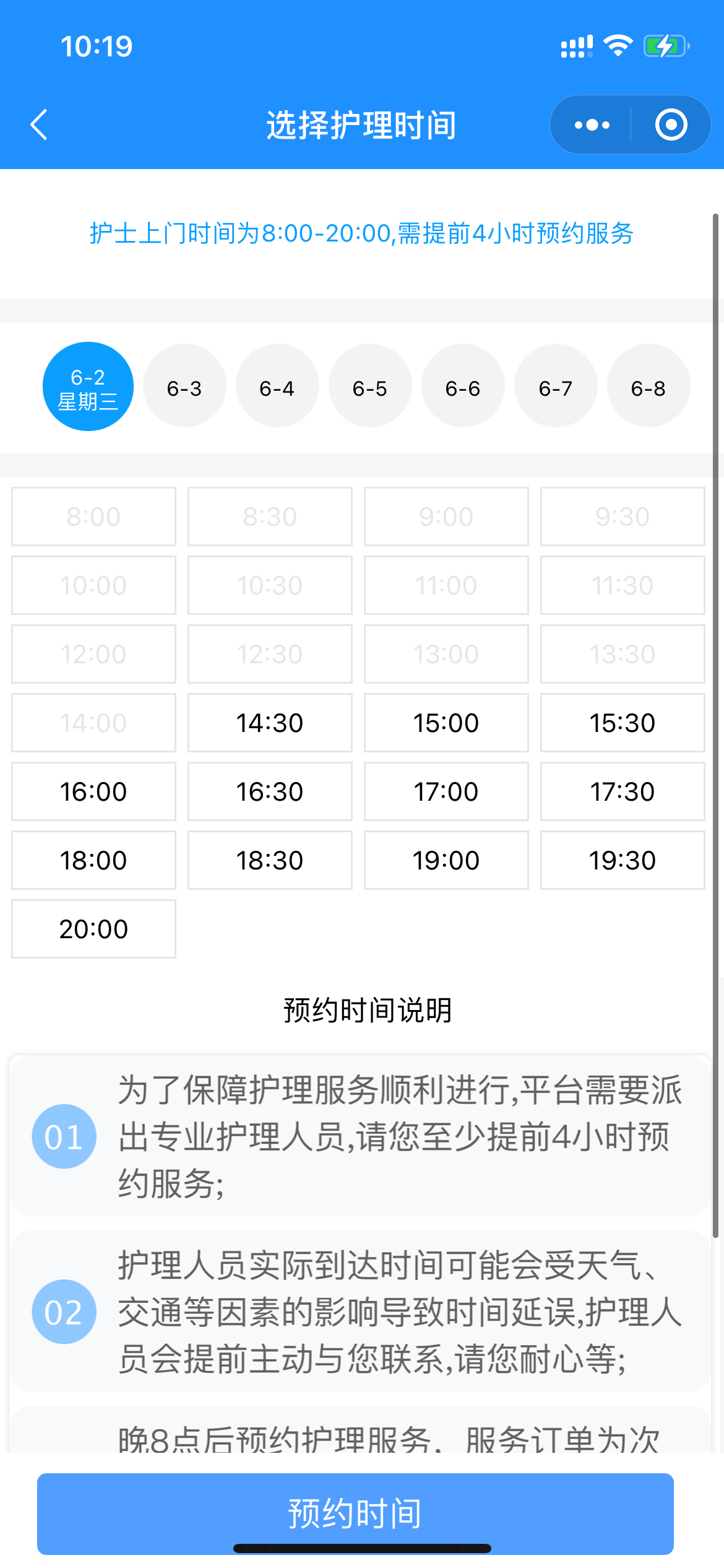 随机预约:全市和平台签约的医院内注册护士都可以接收到订单