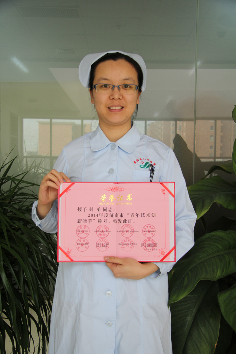近日,在市总工会、团市委、市经信委等联合开展的2014年度济南市“双能手”评选中,我院重症医学科护士长刘莹同志获得济南市“青年技术创新能手”称号。
