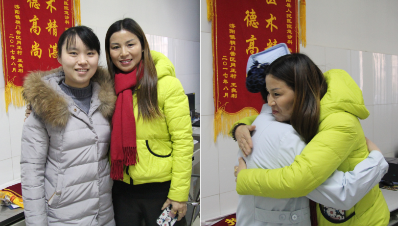 1月8日清晨,医院被昨夜的小雪妆点的格外亮丽,和煦的暖阳融化了屋檐的积雪,化作清水有节奏的滴落在楼前。卢女士欢喜地赶到医院,真诚地向急诊科张义勇主任、陈文晶护士致谢,并将一面写有“拾金不昧风格高 医德高尚人人赞”的锦旗送到了他们手中。