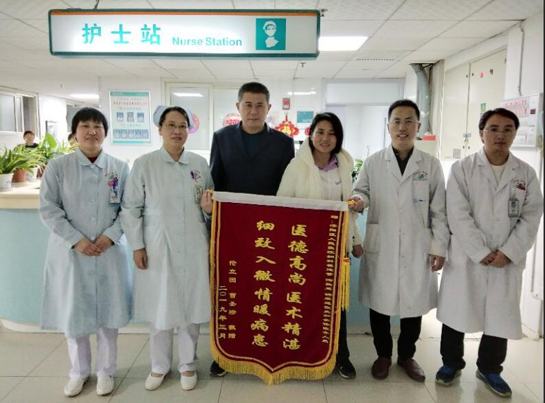 近日,妇科已愈患者曹女士将一面写有“医德高尚医术精湛,细致入微情暖病患”的锦旗送到了崔建营主任手中,感谢全科医护人员的精心治疗和热心服务。