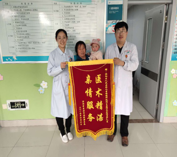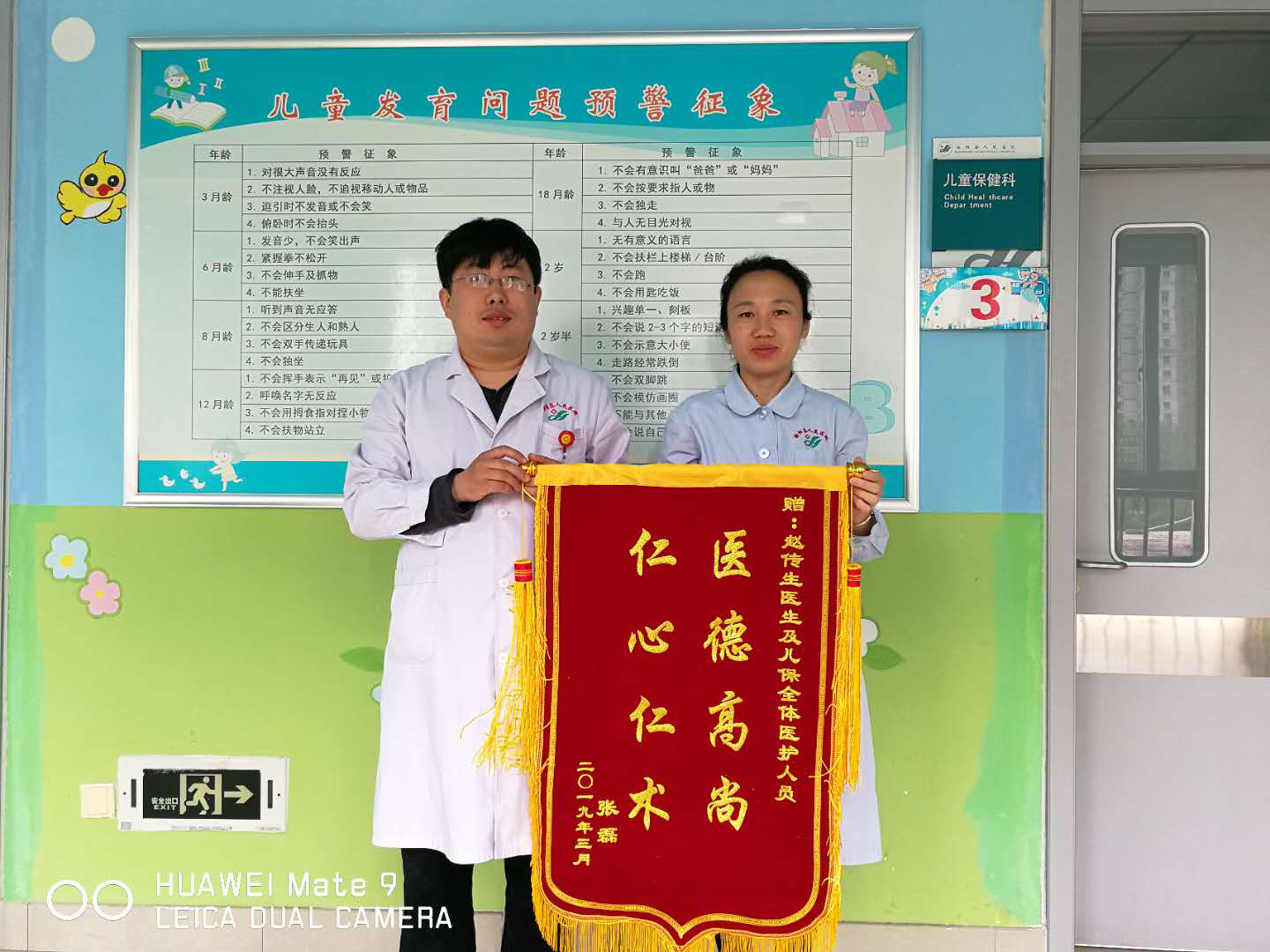 4月2日,患儿母亲将一面带有“神医圣手,德医双馨”的锦旗送到了赵传生大夫手中以示感谢。用宝妈的话讲“我们去了很多地方,最后选择了在这里给孩子治疗,看到医生的认真、负责,我们相信他们的医术水平”。患者及家属的肯定是是对医生最有意义的褒奖。