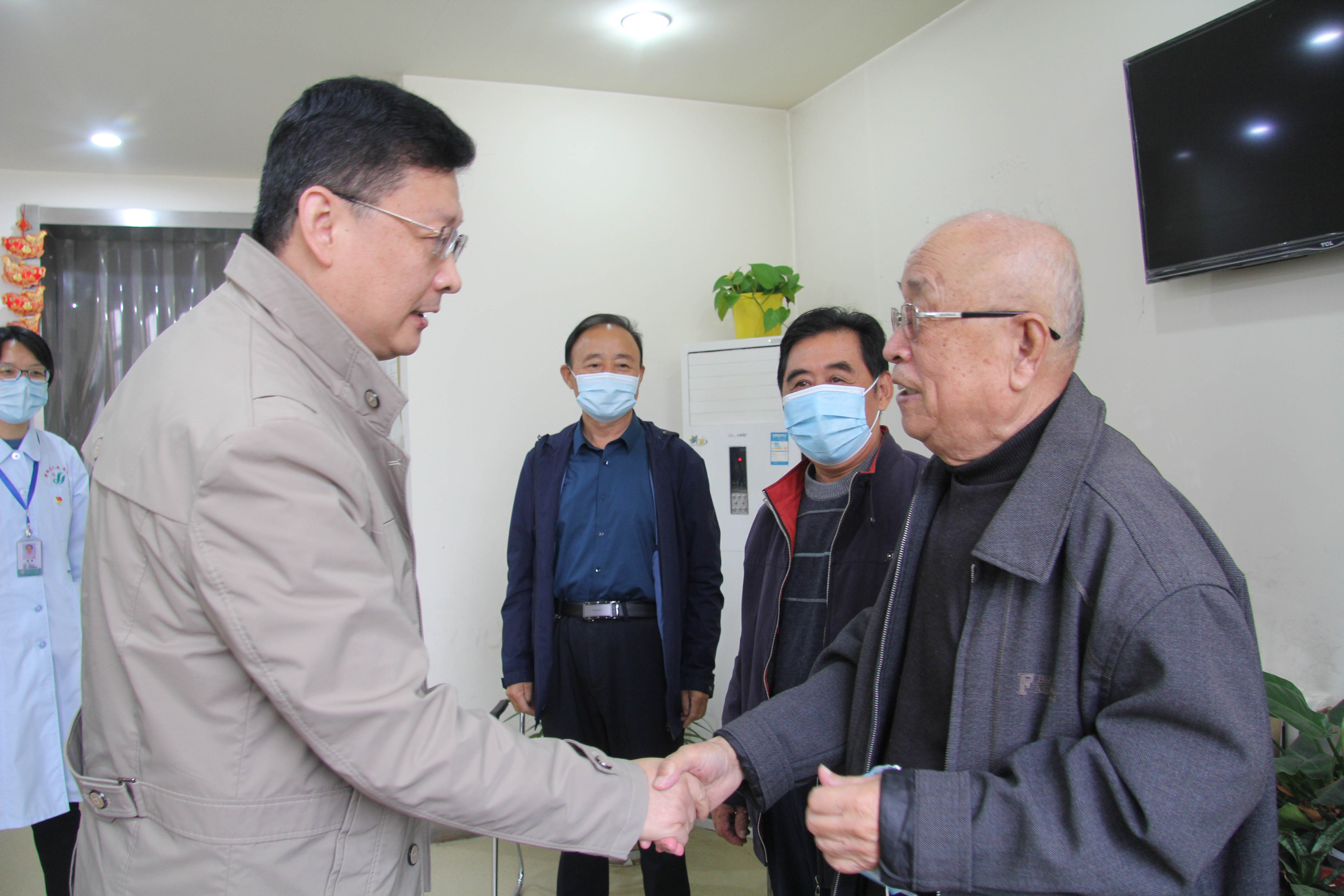 10月14日,为关心关爱退休职工的身体健康,区人民医院特组织全院263名退休职工进行免费健康查体。医院党委书记唐清颖,党委副书记、院长高峰来到健康查体中心,向老前辈们致以节日的问候和衷心的祝愿,并与退休职工亲切地话起家常,询问他们的健康状况。