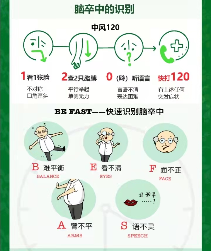 及时发现卒中的早期症状极其重要,越早发现,越早治疗,效果也就越好。患者在发病后立即送达有救治能力的医院或卒中中心单位,得到规范的治疗,可增加恢复的机会,提高生活质量。