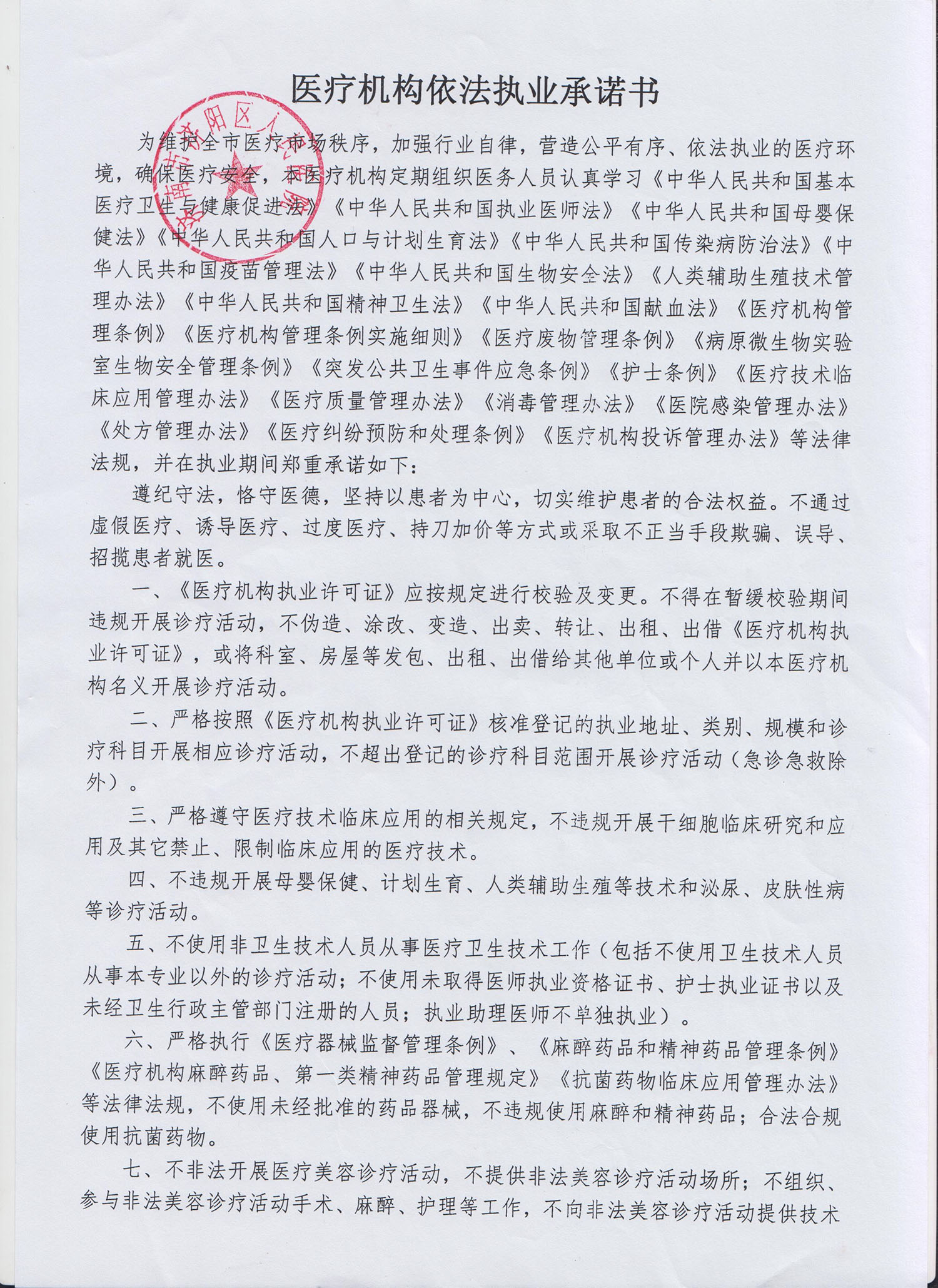 医疗机构依法执业承诺书