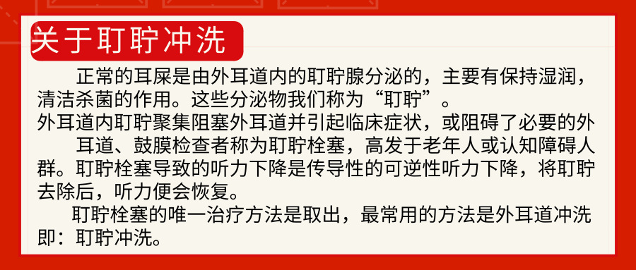10.1日-10.7日,耳鼻喉科将为65岁-70岁老人提供免费耵聍冲洗(每日限额5名需提前预约)。