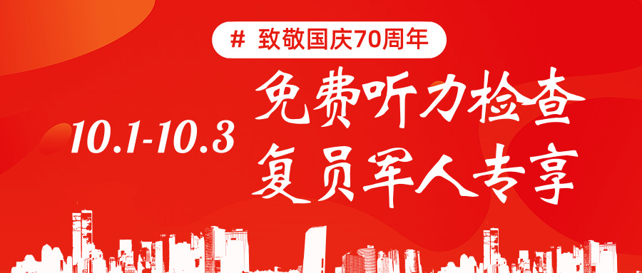 10.1日-10.3日,40-60岁复员军人,专享听力检查免费(每天限前5名 需提前预约)。