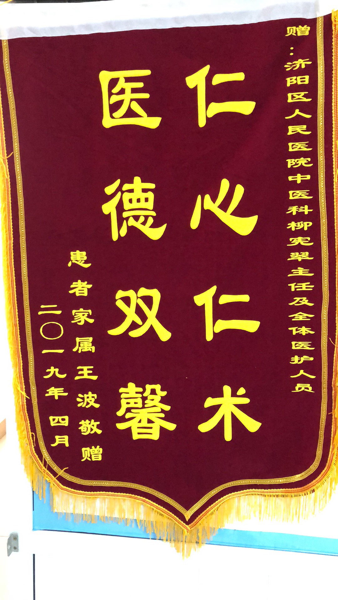 近日,我院中医科患者王先生的家属将一封感谢信及一面锦旗交到综合科病房护士长的手里,以表达自己的感激之情。