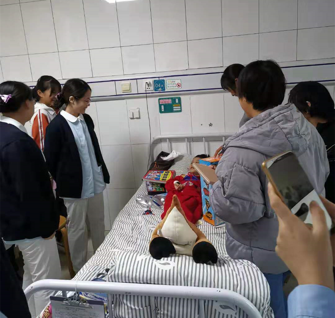 9月20日,小患者肖某某因交通事故伤及头部、腹部,伤后头部流血、上腹部持续性钝痛,伴恶心呕吐、四肢湿冷,急来我院就诊,经CT示脾破裂,肾挫裂伤,门诊以“头部腹部外伤1小时”收住入普外一科。入院时,患儿腹部积液较多,病情危重,其主治医师宋希福综合分析小患者病情,考虑其年龄较小,遂及时向其家属交待病情后,采取保守治疗。住院治疗期间,医护人员悉心照料,与小患者一家结下了深厚感情。机缘巧合,10月16日时逢小患者7岁生日,患者家属与医护人员齐心安排,为小患者准备了一场别样的生日会,漂亮的大蛋糕和护士长卢静静阿姨精心准备的生日礼物,伴随着欢快动听的生日歌与最美的祝福,病房一派欢乐温情。目前,小患者已停药,病情恢复良好。