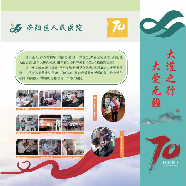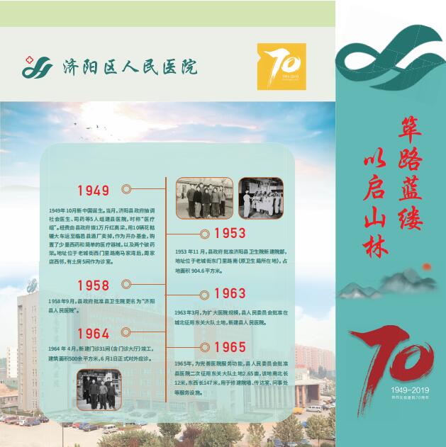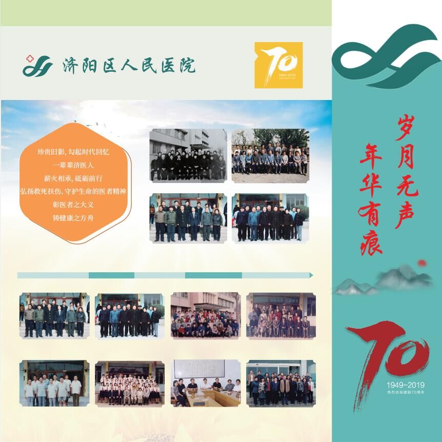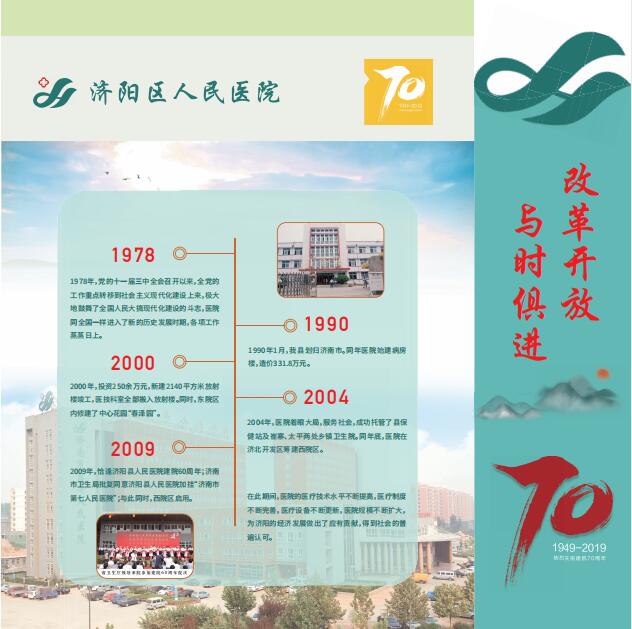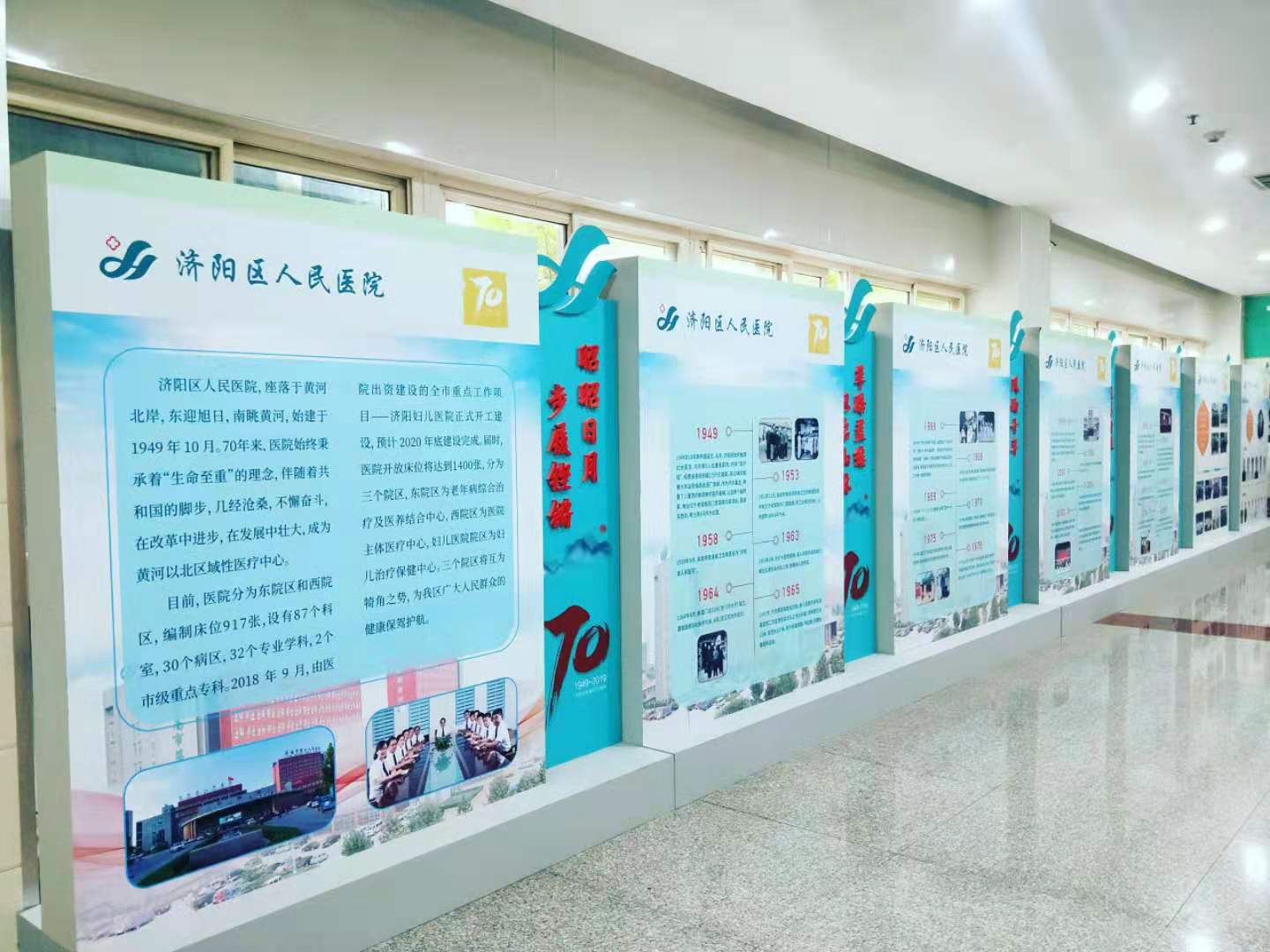 济阳区人民医院自1949年创建以来,已经走过了整整七十年,历经七十年的波澜壮阔,几代人砥砺前行、和衷共济、并肩携手、薪火相传,将医院发展至今天这般壮大。她的历程值得沉思,她的瞬间值得回忆,她的精神值得传承,她的历史值得铭记。为此,在医院七十年华诞之际,因地制宜在门诊楼医疗街建设成了院史长廊。百余张照片记录着医院走过的历程,16张展板也将成为医院文化建设的标志之一。徜徉其中感受历史的同时,继续传承医院精神,更好地为人民群众的健康保驾护航。