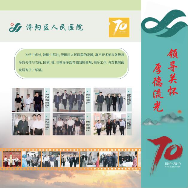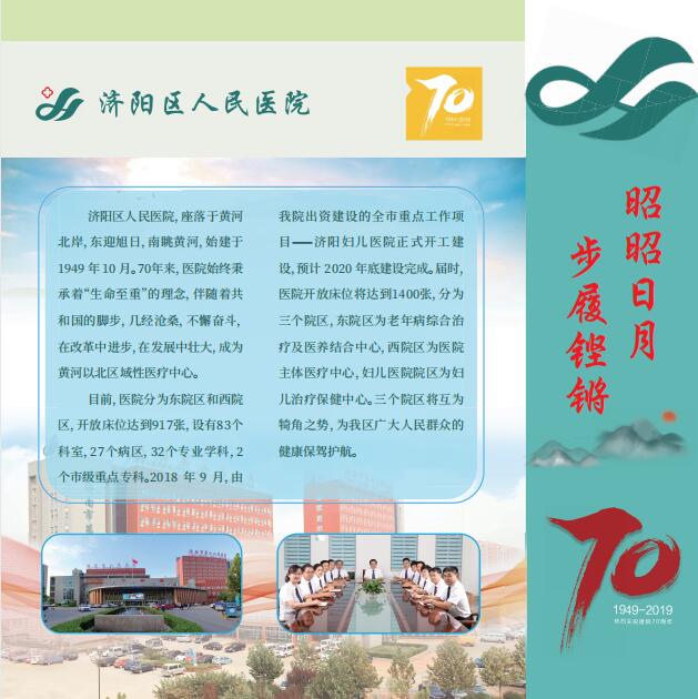 首先是以“济水流长七十载,回眸来路凝初心”为题的前言部分,综述了医院七十年的发展变化,回顾了医院七十年的发展轨迹,表明了建设院史长廊的初心与使命。