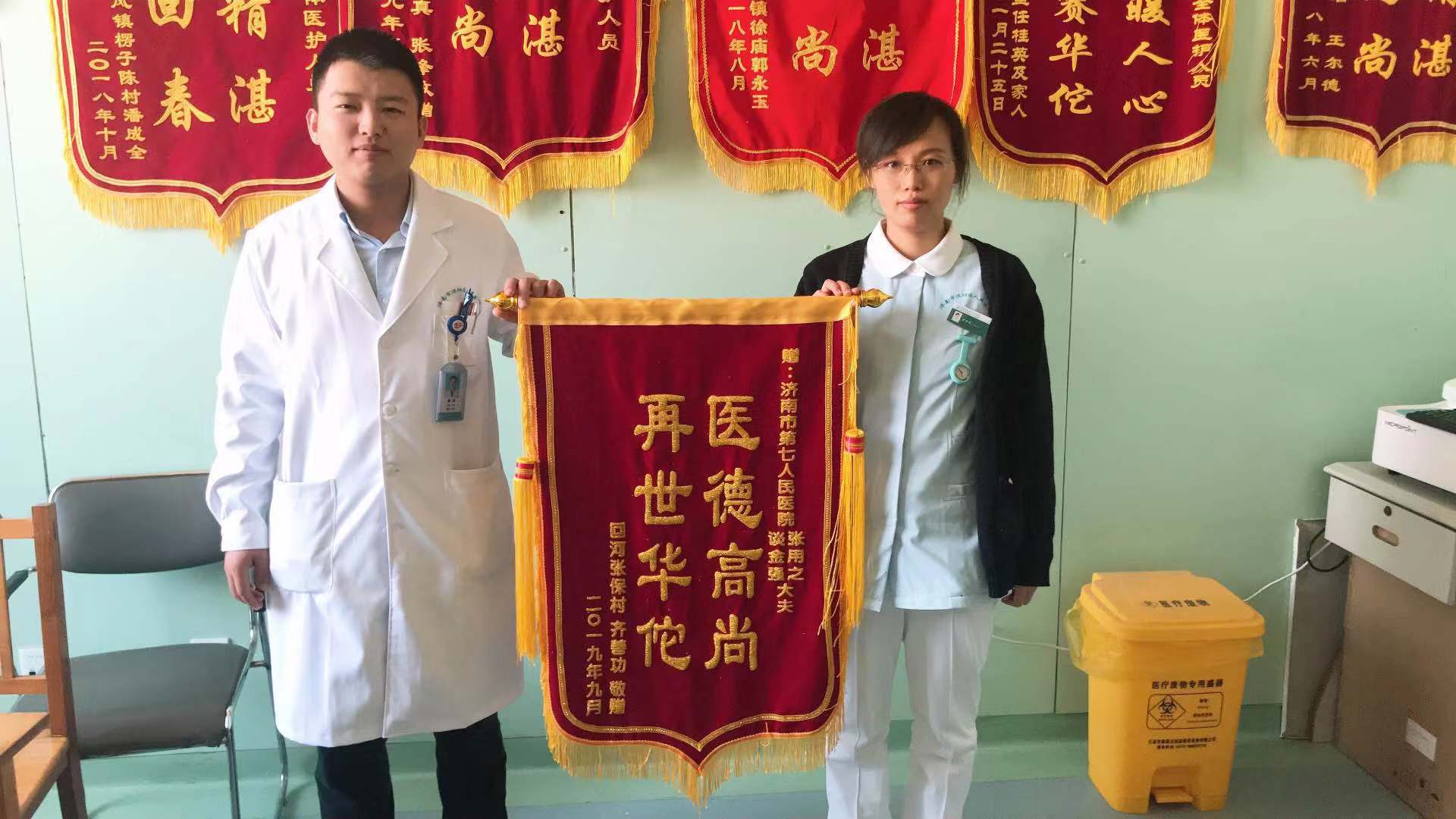 “非常感谢谈医生和护士们这么长时间的的照顾,辛苦啦”近日,CCU患者齐爷爷的家属满脸笑盈地将一面锦旗递到医护人员手中———“再世华佗,医德高尚”。