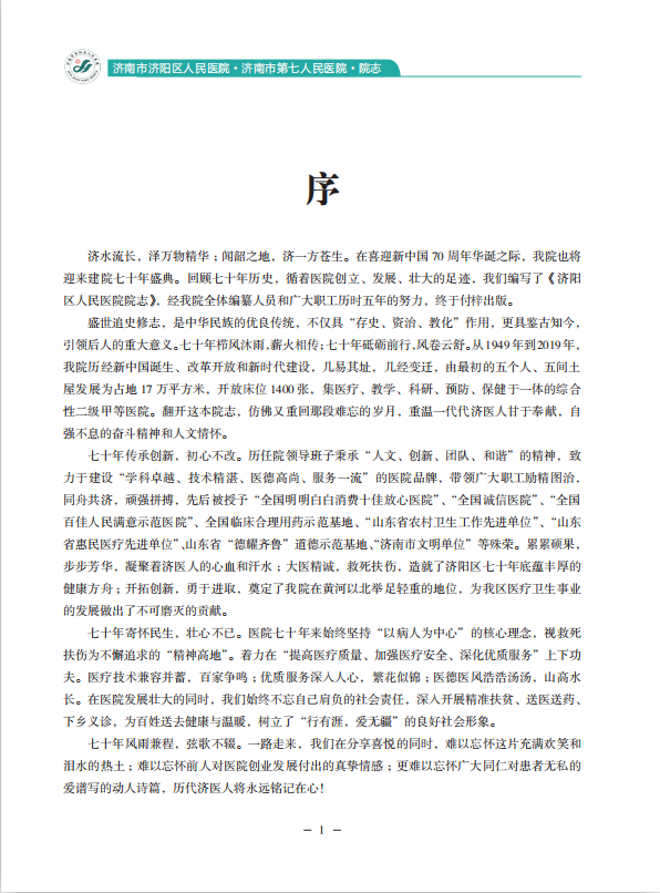 该志书是医院历史上第一部全面系统反映医院发展历史与现状的著述性文献,填补了医院志的历史空白,也为社会了解医院的发展史提供了重要途径,更为济阳区医疗事业保存了一份珍贵而重要的历史资料。