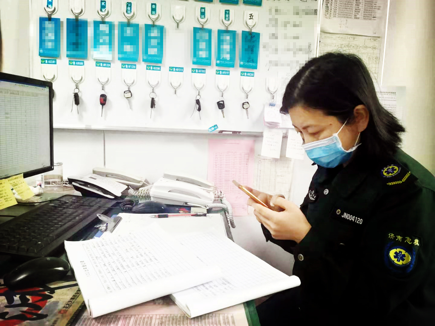 调度员郭娟认真做着车辆调度登记,将发热、有接触史的接诊信息第一时间上报至医院疫情转运组微信群,并于每天下午4点整理上报至卫健局。接到有发热、咳嗽、腹泻的患者,立即询问患者是否疫区归来人员,高度警惕,不敢有一点马虎。因为她知道,电话员多问一句,战友们出征就多一份安全多一点信心。