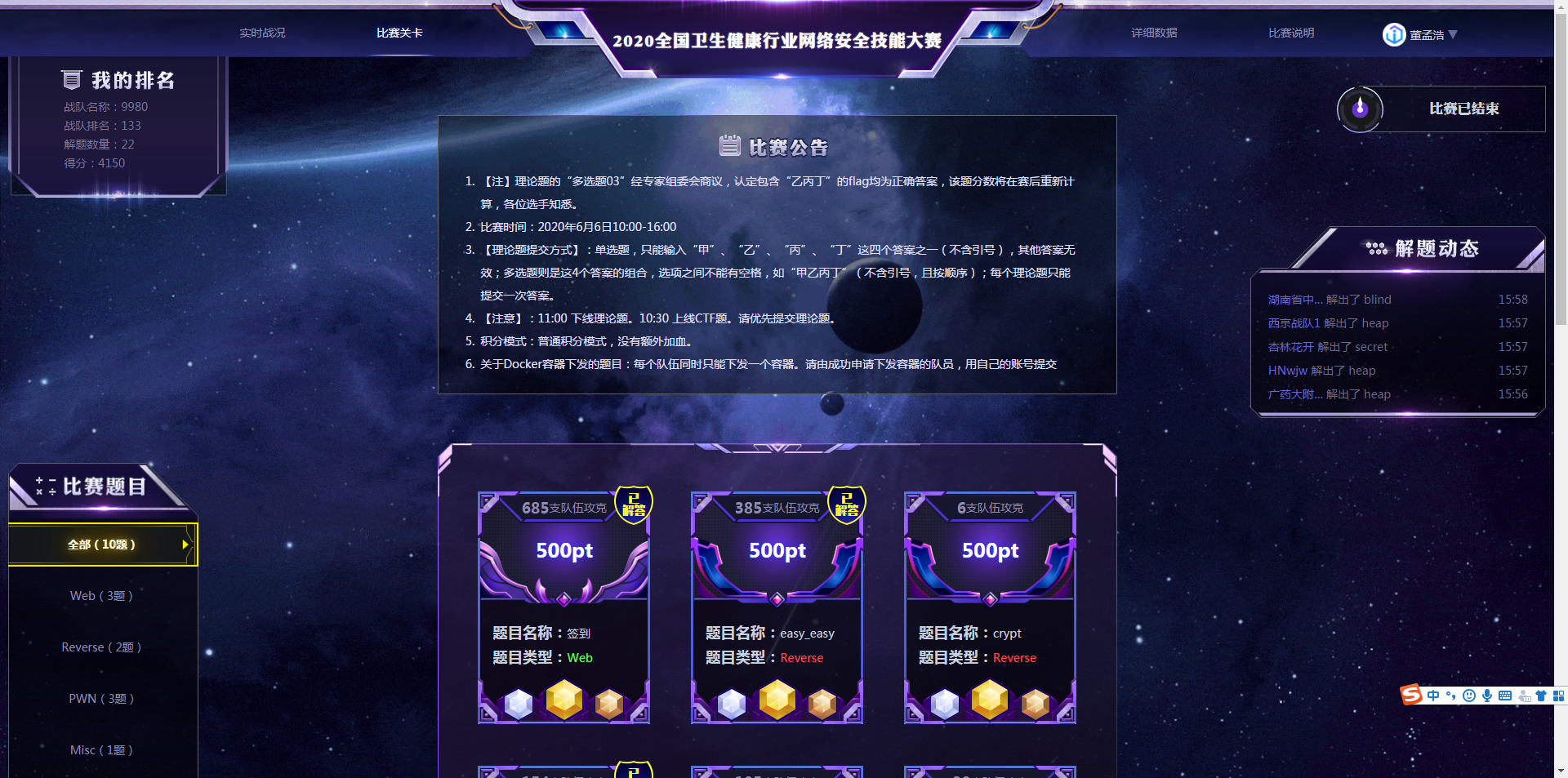 本次大赛共有来自全国30个省(自治区、直辖市)和新疆生产建设兵团的918支队伍、3168名选手参加,是迄今为止卫生健康行业内规模最大、覆盖面最广的网络安全赛事。大赛采用理论题和CTF(夺旗赛)攻防对抗实战相结合的比赛模式,综合考察参赛选手知识储备和实战能力,通过比赛发现和解决问题。