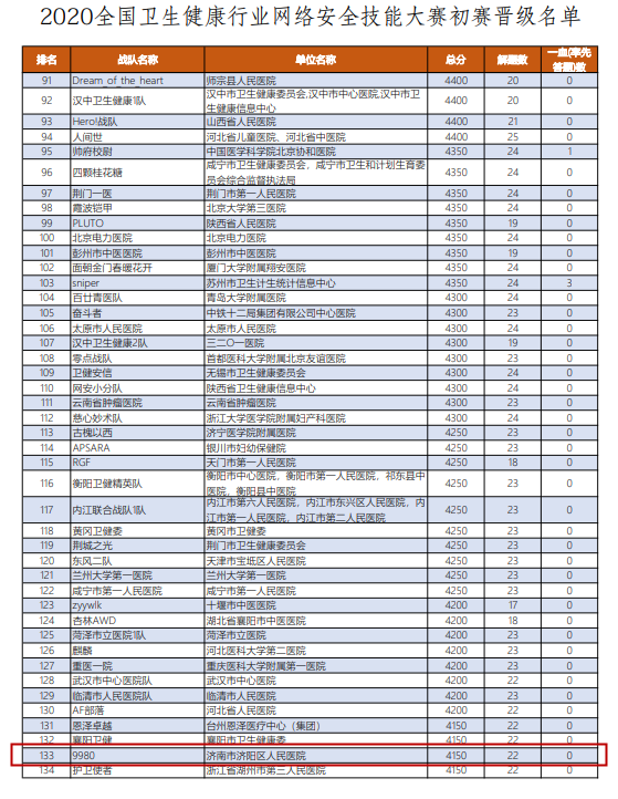 我院参赛选手专业技术扎实,认知反应快速,在激烈的角逐中脱颖而出,总攻克22道大题,斩获4150分的优异成绩,取得了全国第133名,山东省内第12名,济南市第2名的优胜名次,以绝对优势顺利晋级全国复赛。