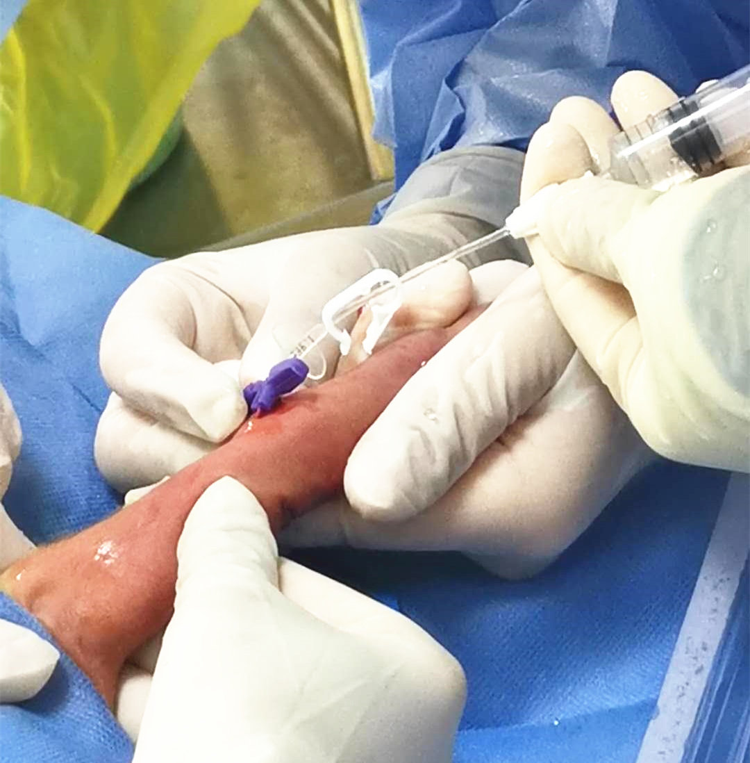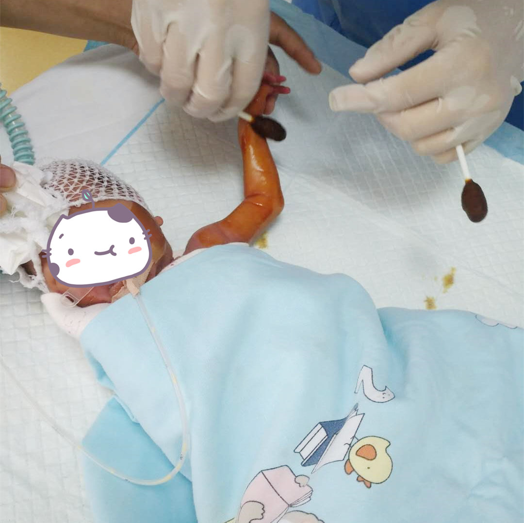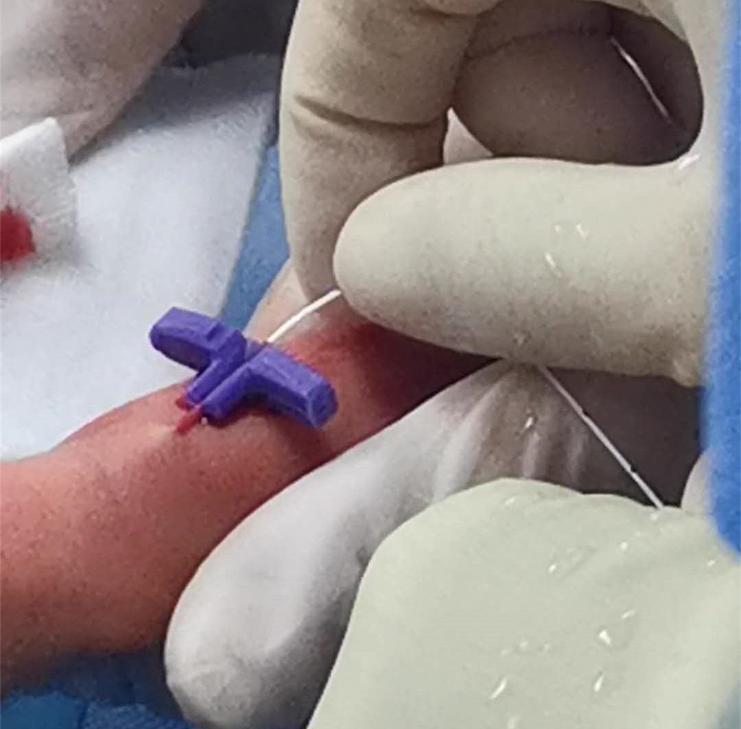 据悉,患儿只有33周,出生时轻度窒息,反应差,呼吸促,口唇发绀,面部及四肢紫绀,三凹征阳性,1分钟、5分钟、10分钟阿氏评分都仅有7分,被紧急送进新生儿重症监护室进行救治,经过医护人员的积极救治,患儿脱离生命危险。由于患儿体重小,胃肠功能发育不完善,喂养困难,需长时间使用静脉营养维持患儿生理需要。但早产儿皮肤娇嫩,周围小静脉血管通透性高,静脉穿刺难度极大,加之住院时间长,若长期使用高浓度的静脉营养液会对患儿血管产生严重刺激,极易导致静脉炎,而一旦引发药物外渗,严重者可造成局部皮肤坏死等不良反应。